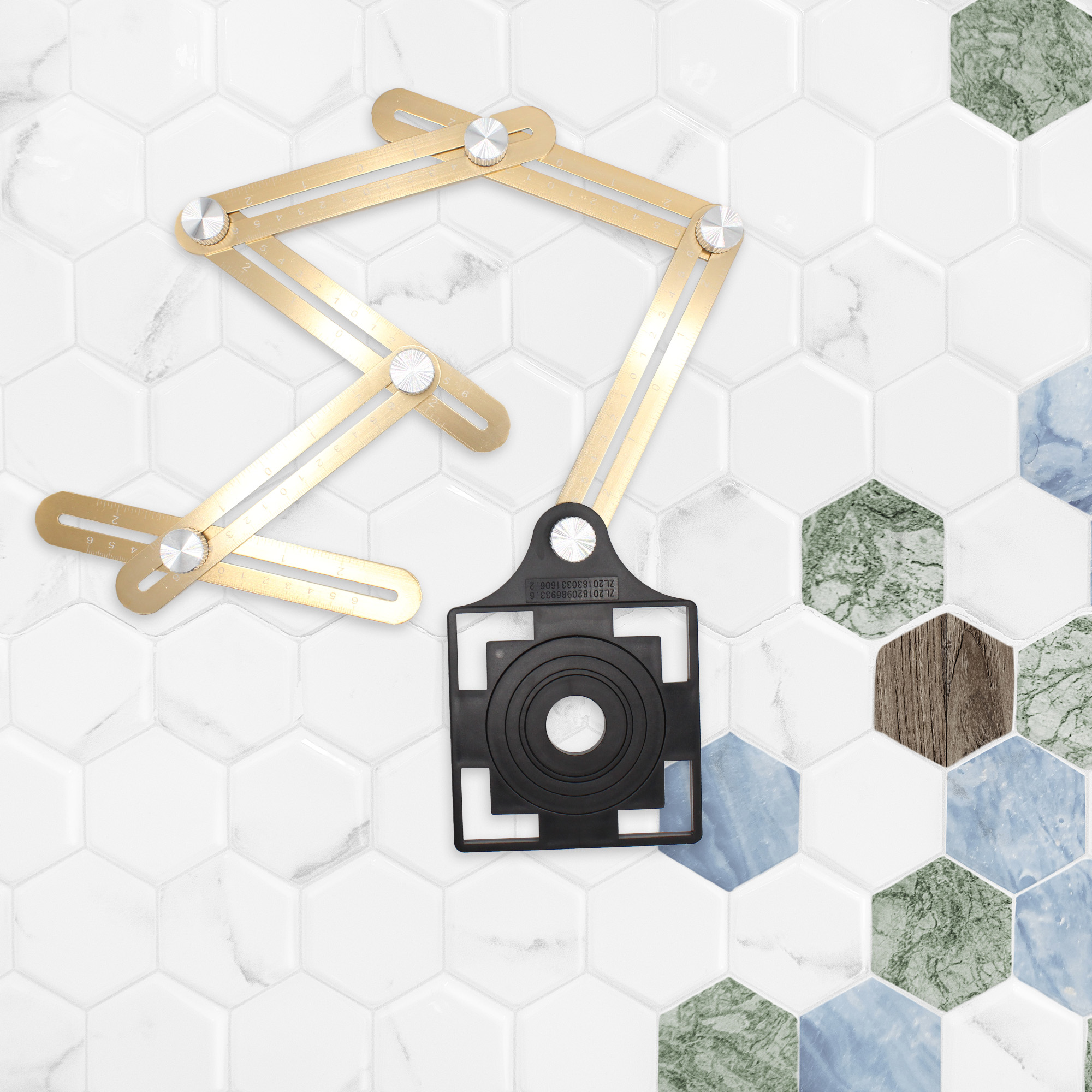 L’outil qui se plie à vos besoins ! Cet outil ingénieux facilite nombre de petits travaux : Reporter une forme sur un autre support ; tracer une forme ; tracer une zone à découper ; tracer un cercle ; positionner des points de perçage ; tracer les emplacements de prises, tuyaux, arrivées de câbles… Les 6 pans sont entièrement modulables grâces aux boutons que vous pouvez placer et serrer où vous voulez. Chaque pan est gradué pour une précision parfaite. En plus des pans vous disposez d’un gabarit qui vous permet de tracer proprement les emplacements pour les sorties de tuyaux, les prises et interrupteurs ou encore les VMC et autre évacuation d’eau. Fabriqué en aluminium, il est conçu pour être à la fois stable et durable. Caractéristiques : – Matières : Aluminium, ABS – Poids : 210 g – Dimensions : longueur environ 100 cm (déplié à plat). – 6 pans de 15 cm (graduation sur 12 cm) + gabarit de 10.5 x 10.5 cm avec 4 cercles de 55, 45, 40, 25 mm de diamètre – Graduation double sens de 0 à 6 cm précision 0.10cm