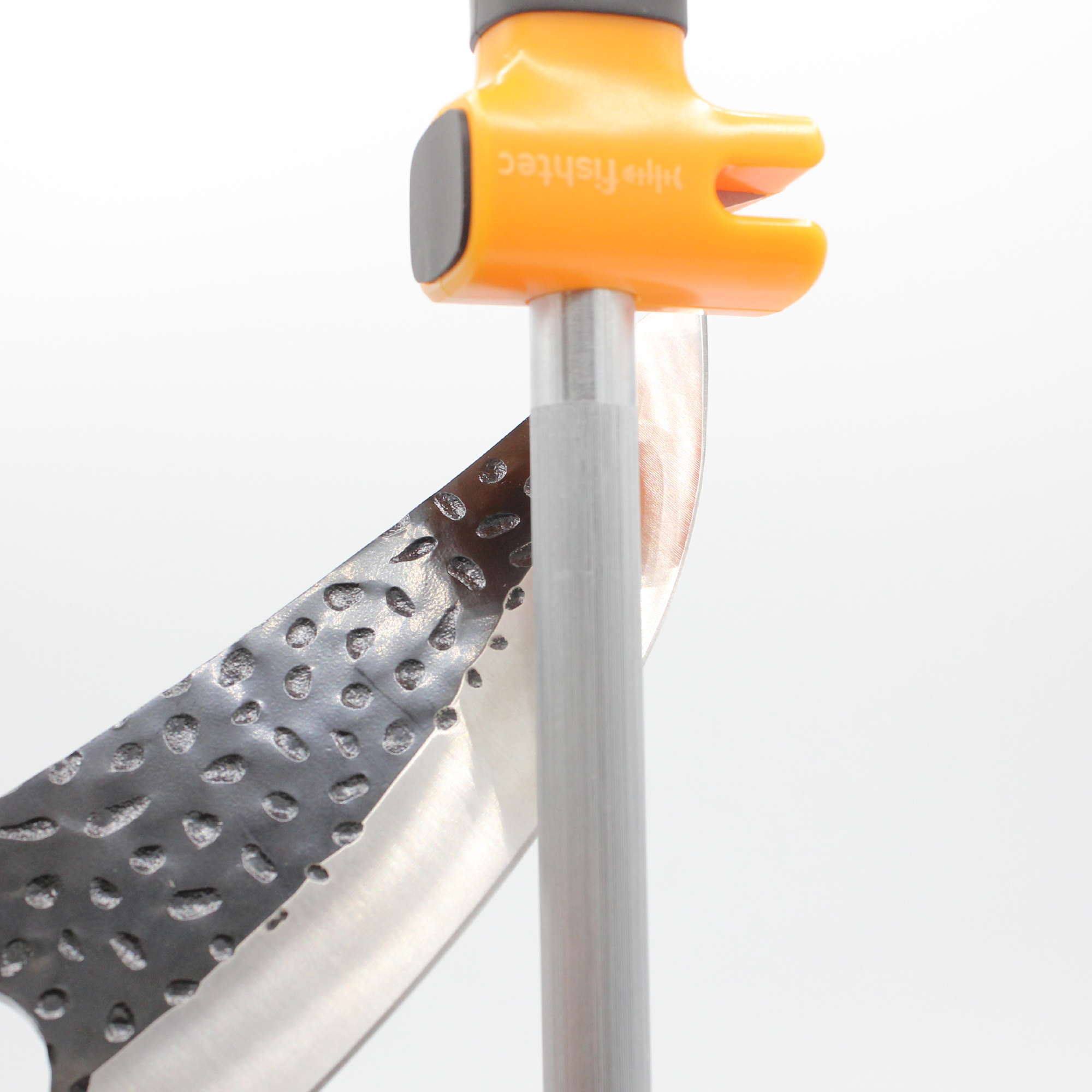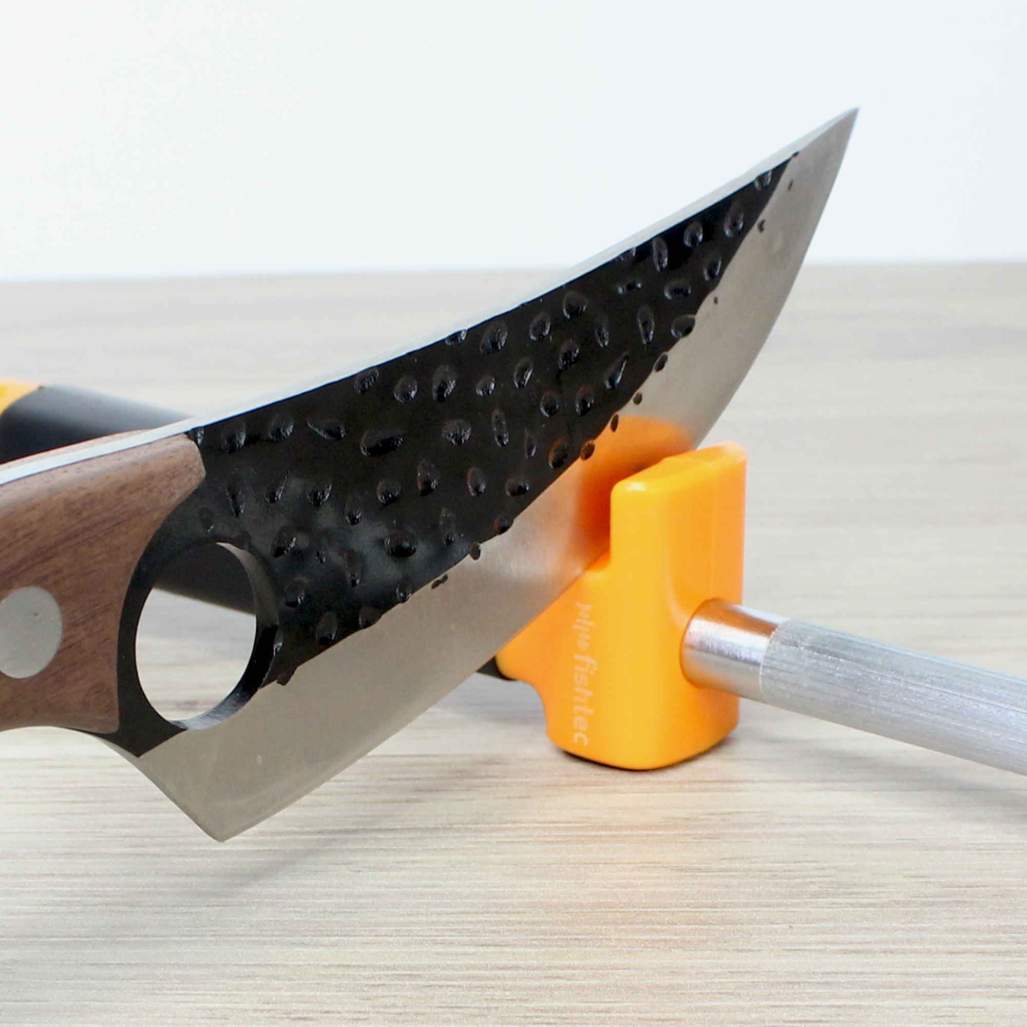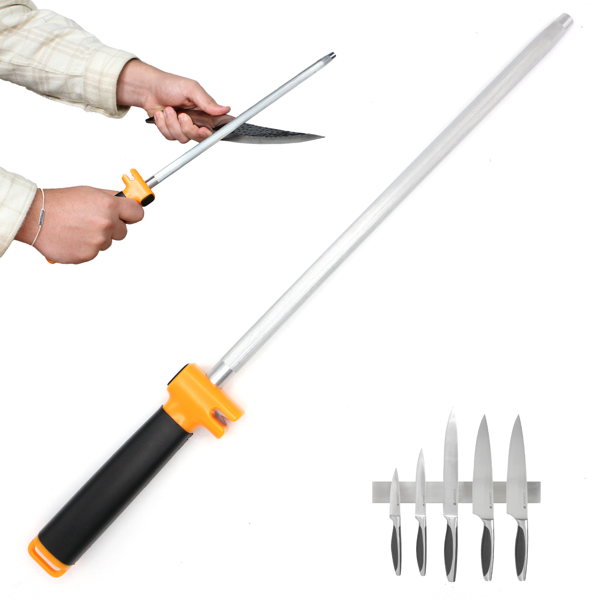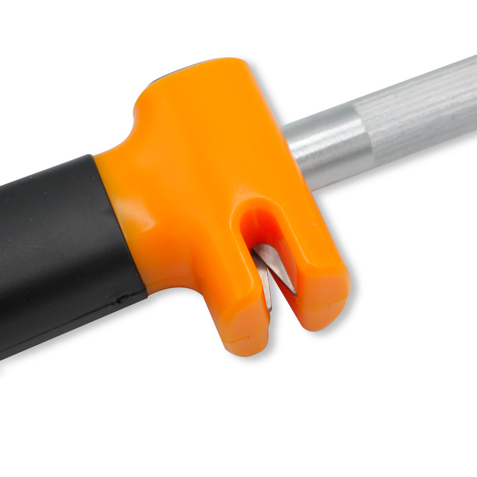 Aiguisez comme un chef ! Tels les bouchers traditionnels ou les grands chefs, aiguisez à la perfection tous vos couteaux grâce à ce fusil à aiguiser. Couteaux de cuisine ou de chasse en métal, aucune lame ne lui résistera. Innovant, ce fusil dispose d’un aiguiseur intégré situé à la base de la mèche. Vous pourrez ainsi y aiguiser vos lames plus courtes sans changer de matériel. Pour votre sécurité, le manche est recouvert d’un revêtement antidérapant. Lors de l’utilisation de l’aiguiseur intégré, l’ensemble est bien stable grâce au tampon antidérapant situé sur le dessous. Fin et léger, il est conçu aussi bien pour les pro que pour les débutants et se range facilement grâce à son crochet. Caractéristiques : – Matières : Acier au carbone (mèche),carbure de tungstène (aiguiseur), ABS,TPE, silicone. – Dimensions : 45.5 x 4.5 x 3.3 cm – Poids : 250 grammes – Certifié LFGB