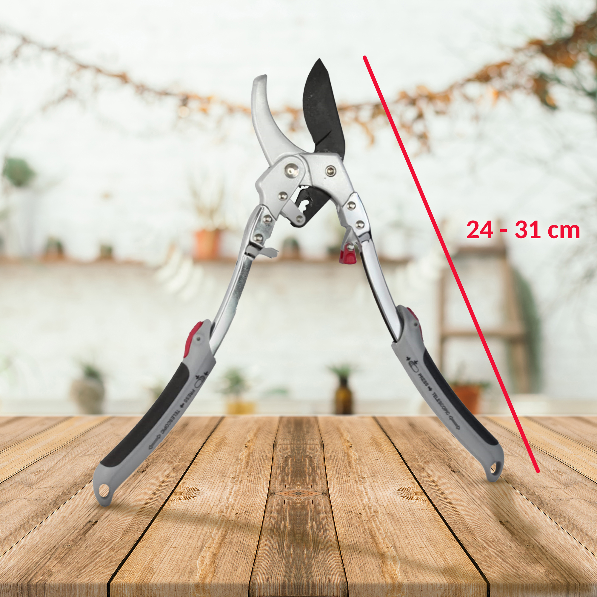 Un sécateur offrant une coupe facile ! Le mécanisme à crémaillère simplifie la coupe : le système 3 crans assure l’effet de levier maximal. Il suffit de serrer plusieurs fois les poignées et la branche est coupée ! Il permet de couper des branches allant jusqu’à 20 mm de diamètre. Ses poignées extensibles (de 24 à 31 cm) vous permettront de décupler votre force et de couper les plus grosses branches sans vous fatiguer et sans mettre les mains dans vos massifs épineux (rosiers…). Confortable et ergonomique, il permet une parfaite prise en main. Caractéristiques : – Matières : Lame en acier – Corps en aluminium et polypropylène – Revêtement du manche anti-dérapant