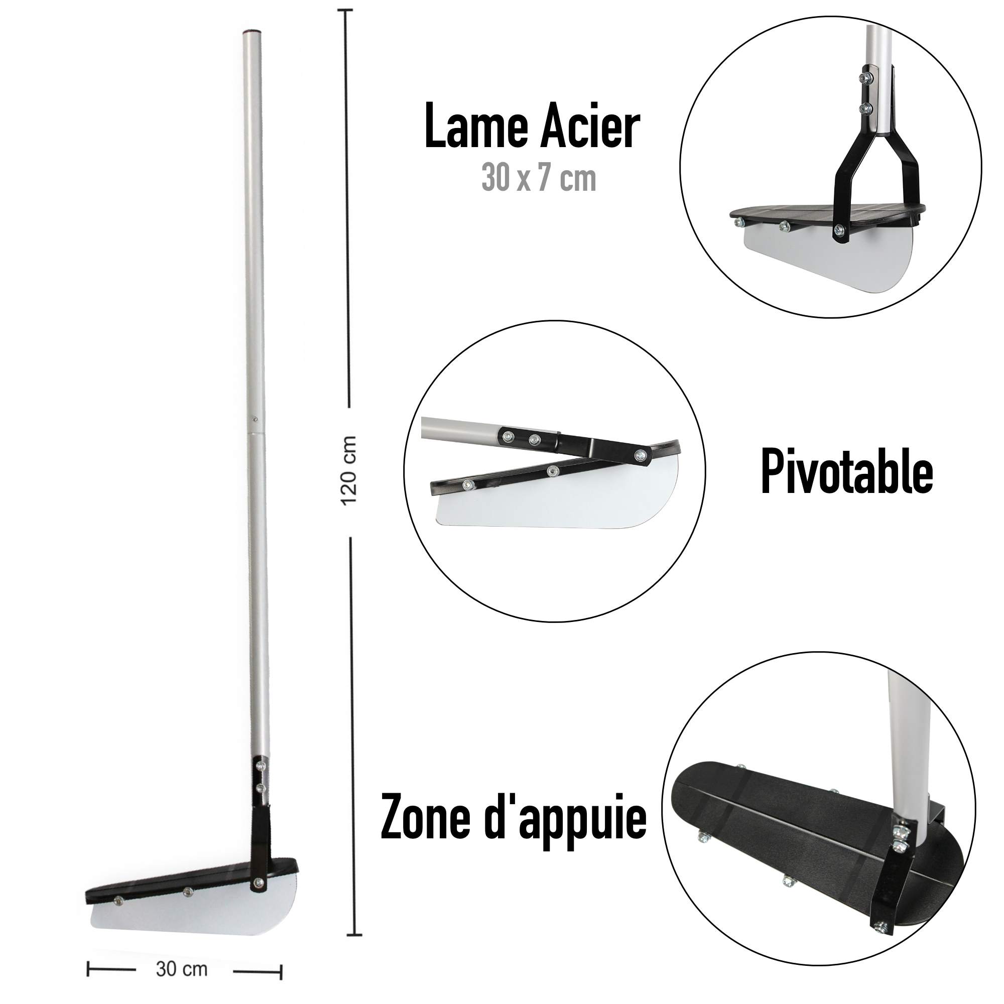 Des bordures nettes sans effort ! Ce tranche bordure permet de délimiter massifs , parterres de fleurs ou potager en leur donnant un rendu net et précis. La lame de 28 cm de long, vous permet de trancher une large zone à chaque pas. Le fil de lame d’une épaisseur d’1mm tranche à la perfection la terre. La large zone d’appui vous permet de positionner au mieux le pied pour un maximum de force. Le long manche (102 cm) pivote pour un meilleur confort d’utilisation Caractéristiques : – Matières : Acier, Acier inoxydable, Plastique polypropylène – Dimensions : 118 x 28.5 x 12 cm – Lame : 1 mm d’épaisseur – Livré démonté
