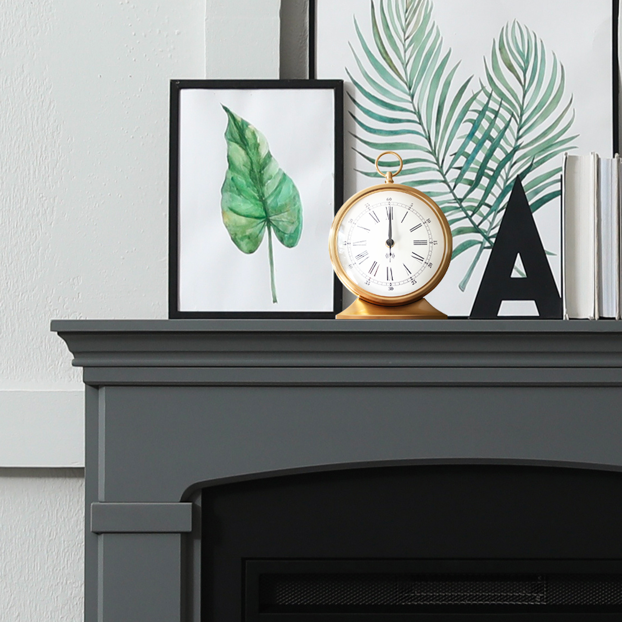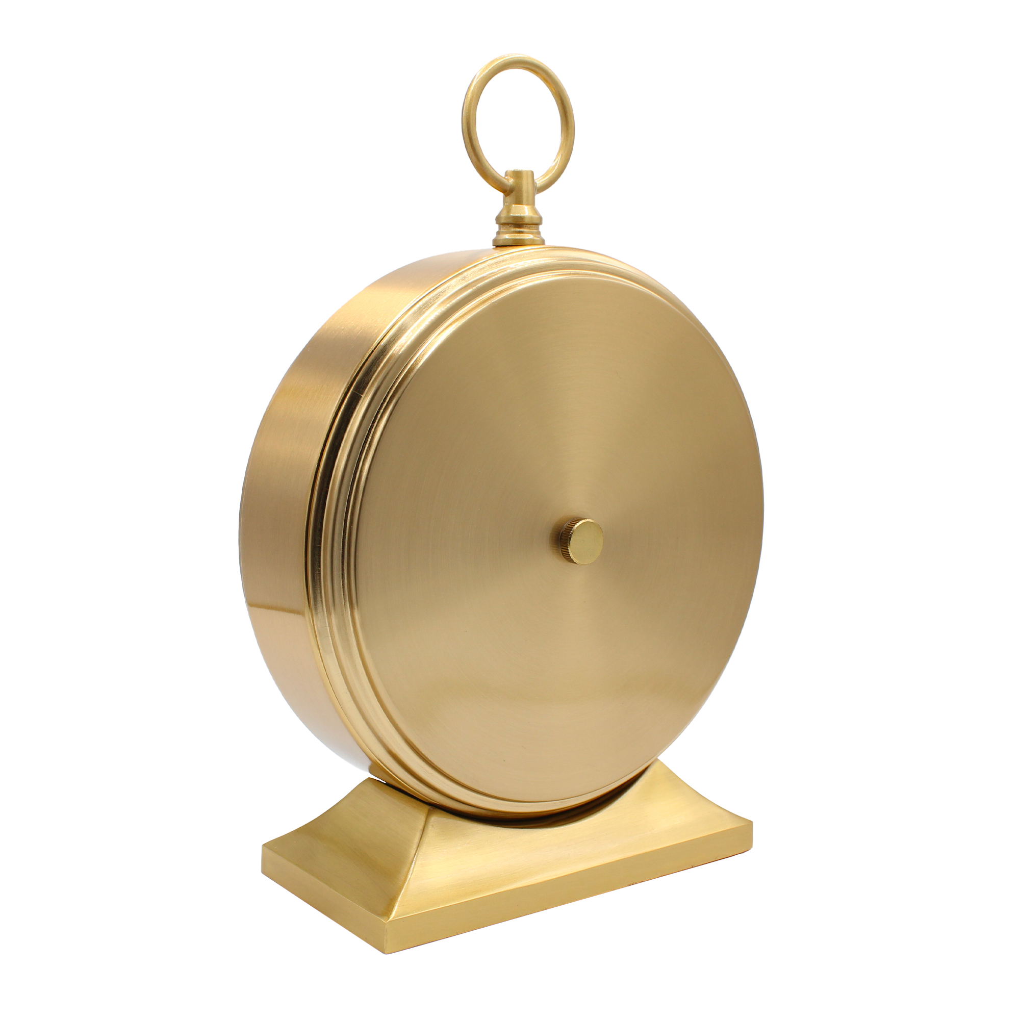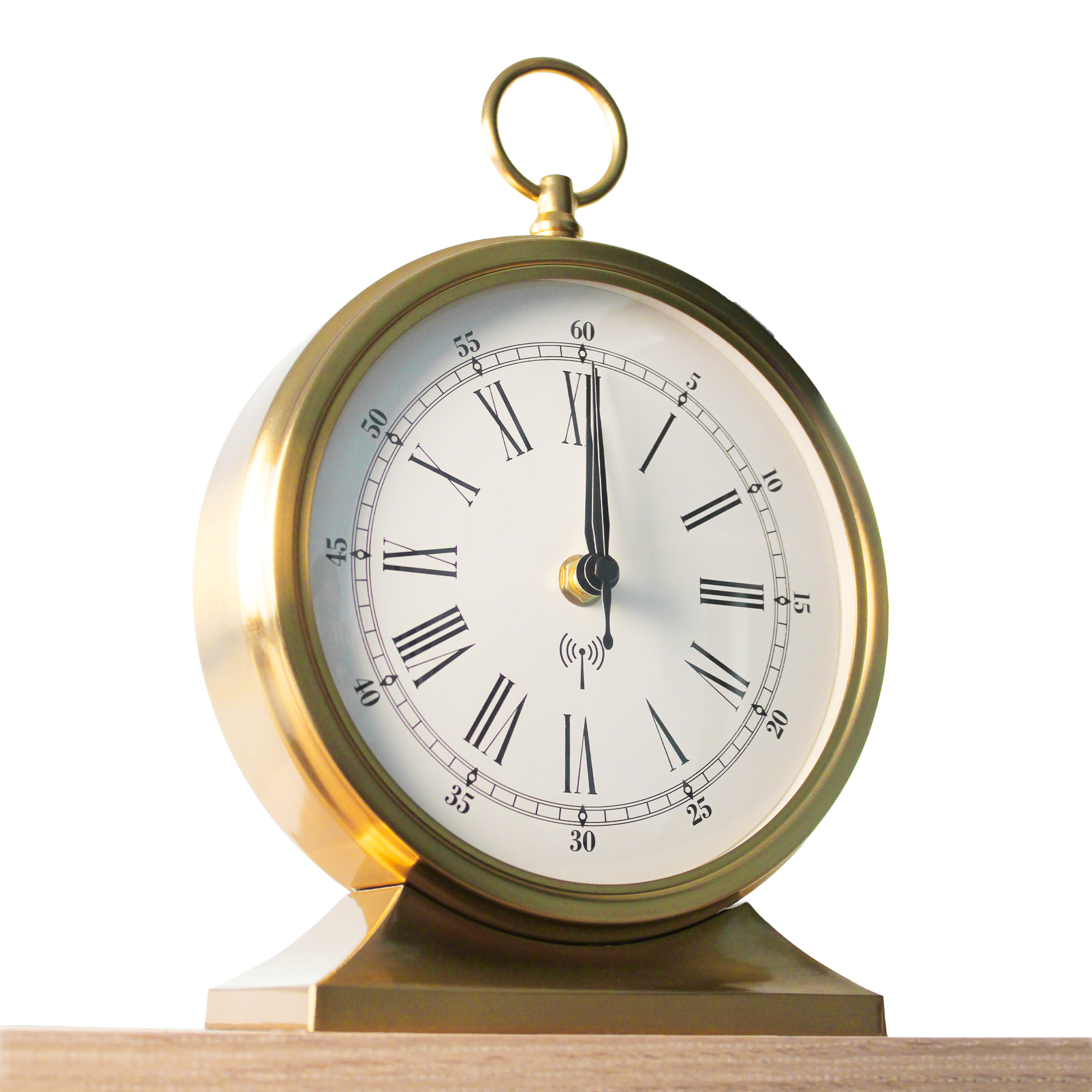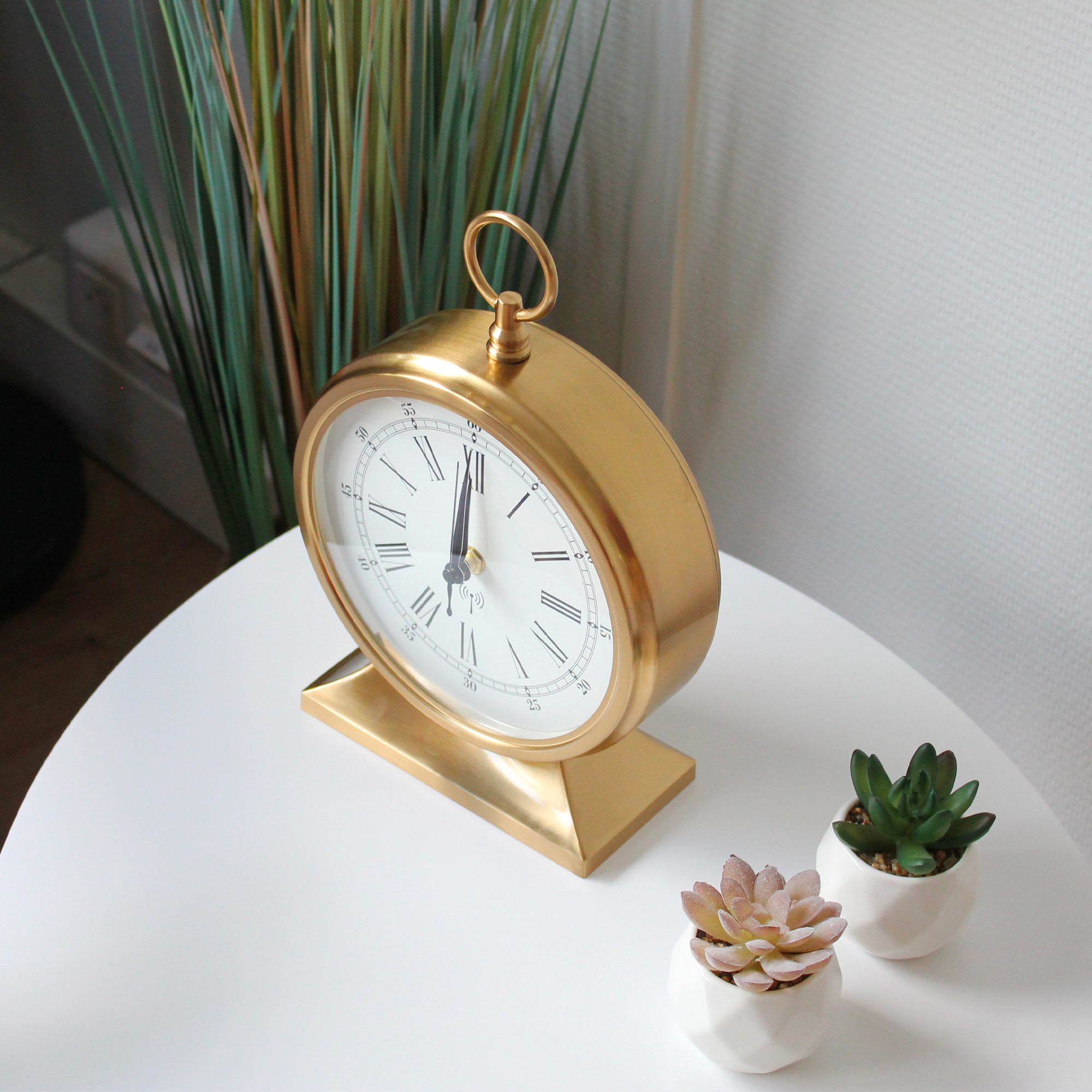Le charme de l’ancien chez vous Dès son apparition au début du XV° siècle, la montre gousset était signe de sophistication et de raffinement. Charles II d’Angleterre en était le meilleur ambassadeur auprès des grandes cours de l’époque. Aujourd’hui encore, le charme rétro de la montre gousset, séduit et pousse à la nostalgie. Cette magnifique horloge reprend les codes de la montre gousset d’antan tout en ayant la technologie d’aujourd’hui. Radio-pilotée, elle se met à l’heure seule, vous garantit une indication de l’heure rigoureusement exacte et passe automatiquement à l’heure d’été/d’hiver. Le grand cadran d’un diamètre de 19 cm et les grands chiffres romains en font une horloge bien lisible. Le mouvement complètement silencieux et la vitre en verre complètent le charme de cette horloge. Caractéristiques : – Matière : Acier, verre – Poids : 752 g – Dimensions : Base 19 X 8cm, cadran Ø 19 cm X 4.5, Hauteur totale : 28 cm, – Alimentation : 1 pile AA (non incluse) – Radiopilotée – Mouvement silencieux – Certifiée CE, RoHS, RED