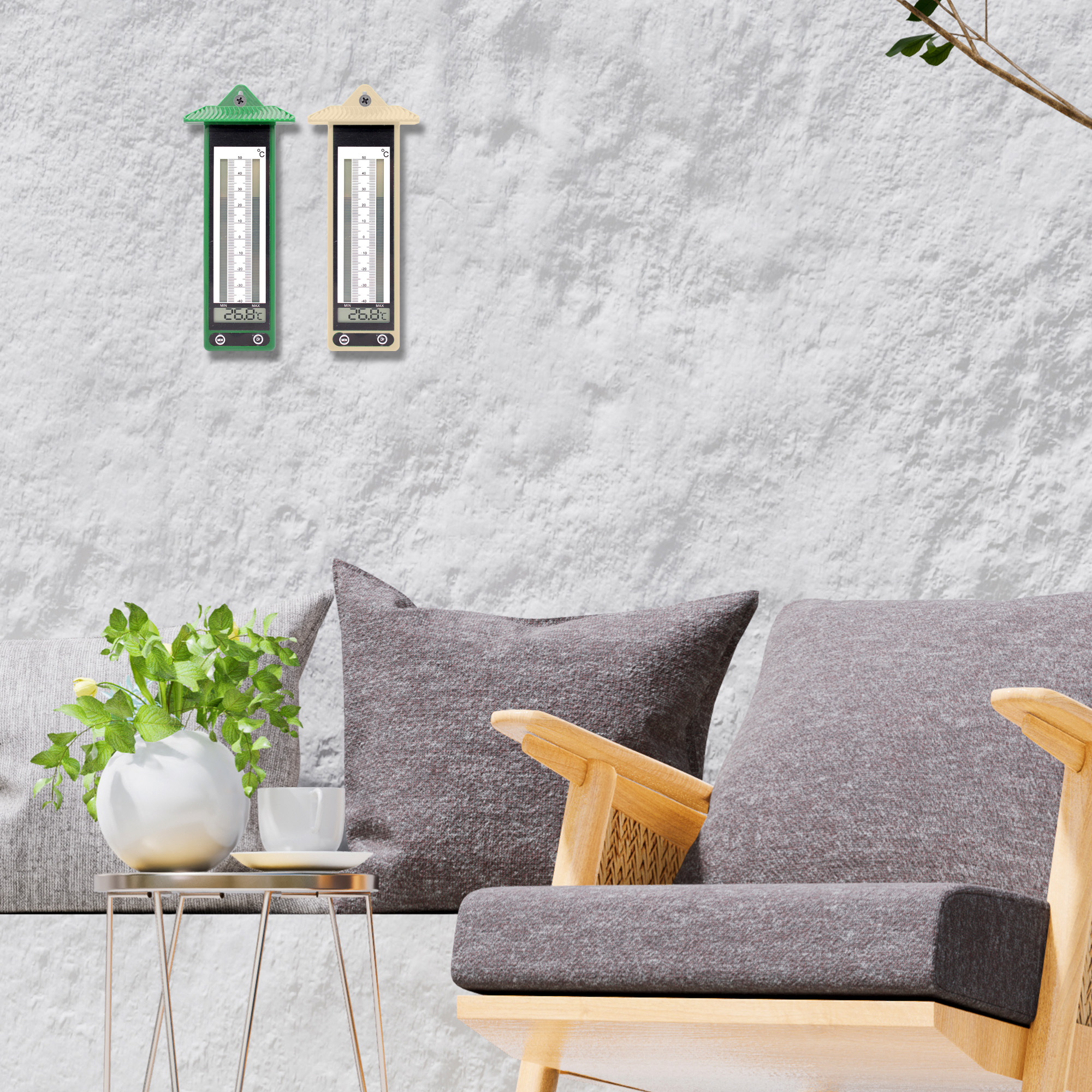 Consultez la température facilement avec ces 2 thermomètres originaux! Leur double affichage digital (gradué et chiffré) vous indique la température minimale et maximale, et leur look nature trouvera sa place harmonieusement dans votre jardin, terrasse, balcon… Utilisez-les pour le soin de vos plantes, ou encore pour consulter l’évolution des températures: leur affichage digital permet une lecture facile et rapide. Leur plage de mesure permet de mesurer des températures extrêmes ( de – 40 à + 50°C)! Leur forme originale en fait des beaux objets de décoration, et vous pouvez facilement les accrocher à un mur ou à un arbre, grâce à leur trou de fixation situé à l’arrière. Caractéristiques: – Matière: ABS – Piles: 2 x AAA (non fournies) – Fonction mémoire journalière