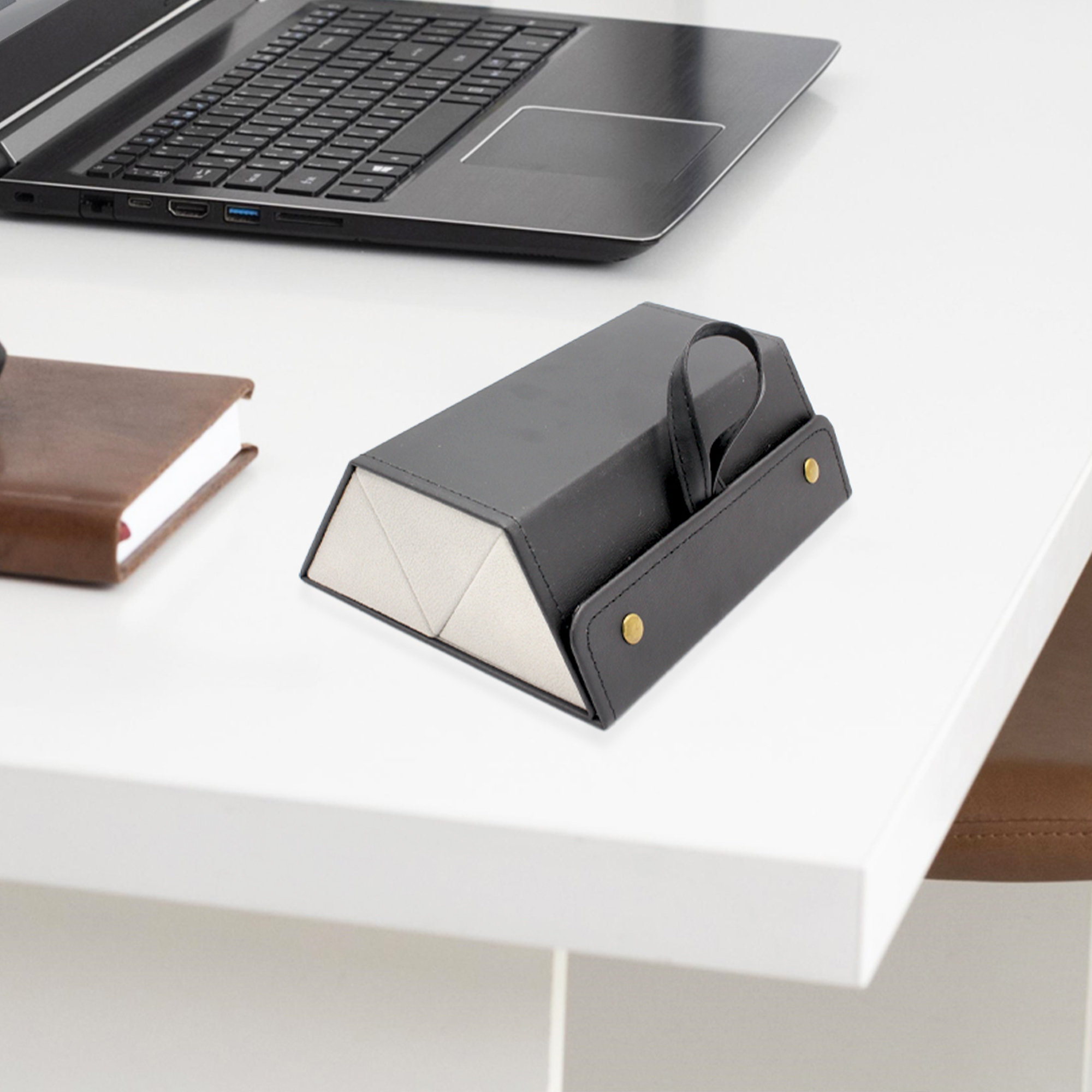 Un seul rangement pour toutes mes paires de lunettes! Aujourd’hui, nos yeux sont sollicités en permanence. Nous avons de nombreuses paires de lunettes pour les protéger (lunettes de lecture, soleil, conduite ou encore pour les écrans). Cependant, il est difficile de toujours les avoir sur soi. De plus, elles sont facilement rayées par le transport ou encombrantes. La lunettes box est la solution idéale pour les avoir partout avec vous. Cette pochette de 3 rangements vous permet d’avoir avec vous toutes les paires de lunettes dont vous avez besoin. Prenez vos lunettes de conduite, de lecture et votre plus belle paire de solaire pour sortir et tout cela facilement et sans vous incommoder. Une fois repliée, la pochette est ultra compact, elle est donc facile à glisser dans un sac ou une valise. La lunettes box est aussi totalement rigide afin de protéger vos lunettes des chocs. Pratique, sa poignée vous permet de la transporter sans prendre de sac ou bien de la ranger facilement sur votre porte-manteau à la maison. Utile, son revêtement intérieur anti-griffure protégera vos lunettes pendant le déplacement ! Existe en marron Caractéristiques : – Dimensions : 16 x 13 x 6 cm – Matières : PU + Polyester – Poids 0.19 Kg – Coloris : Noir ou Marron