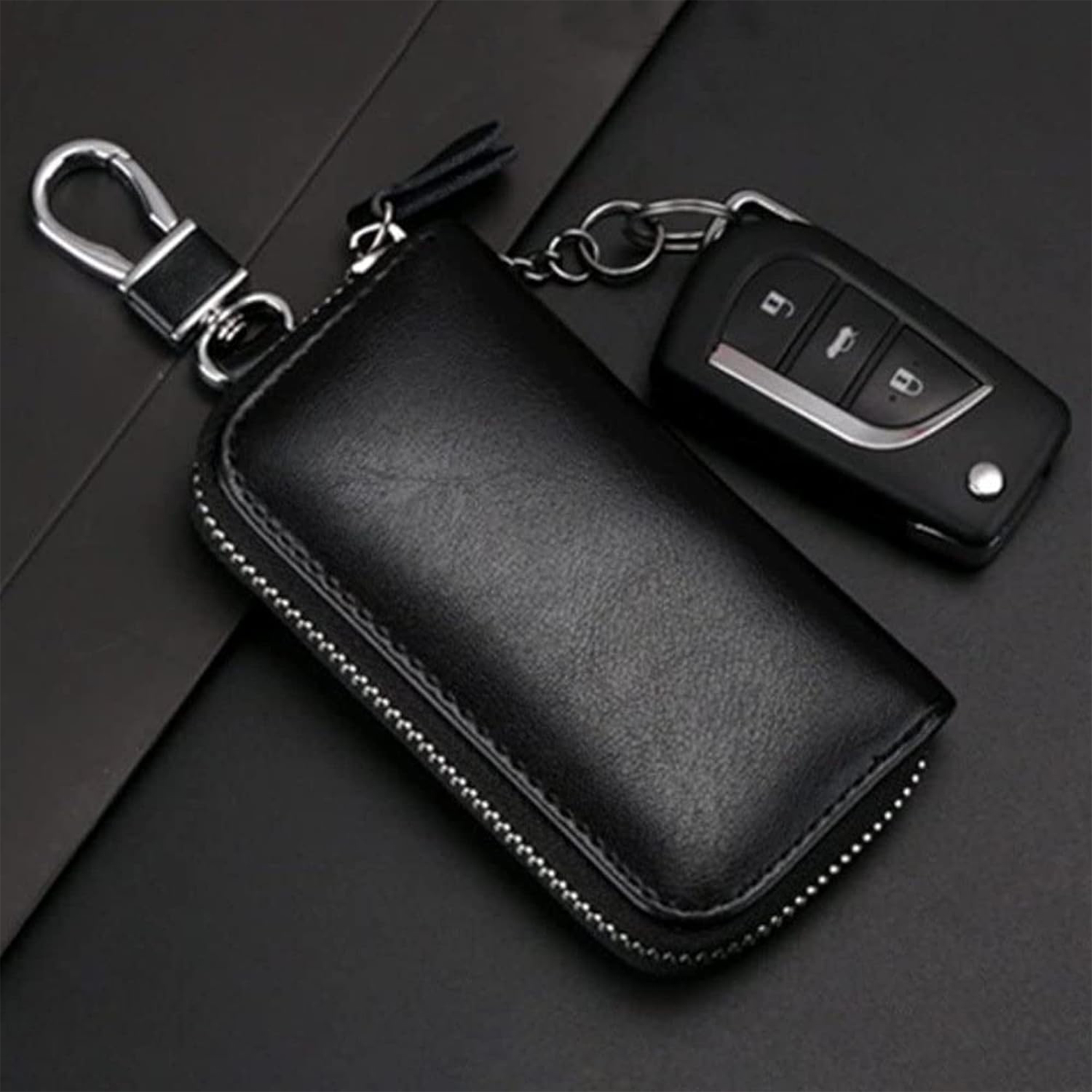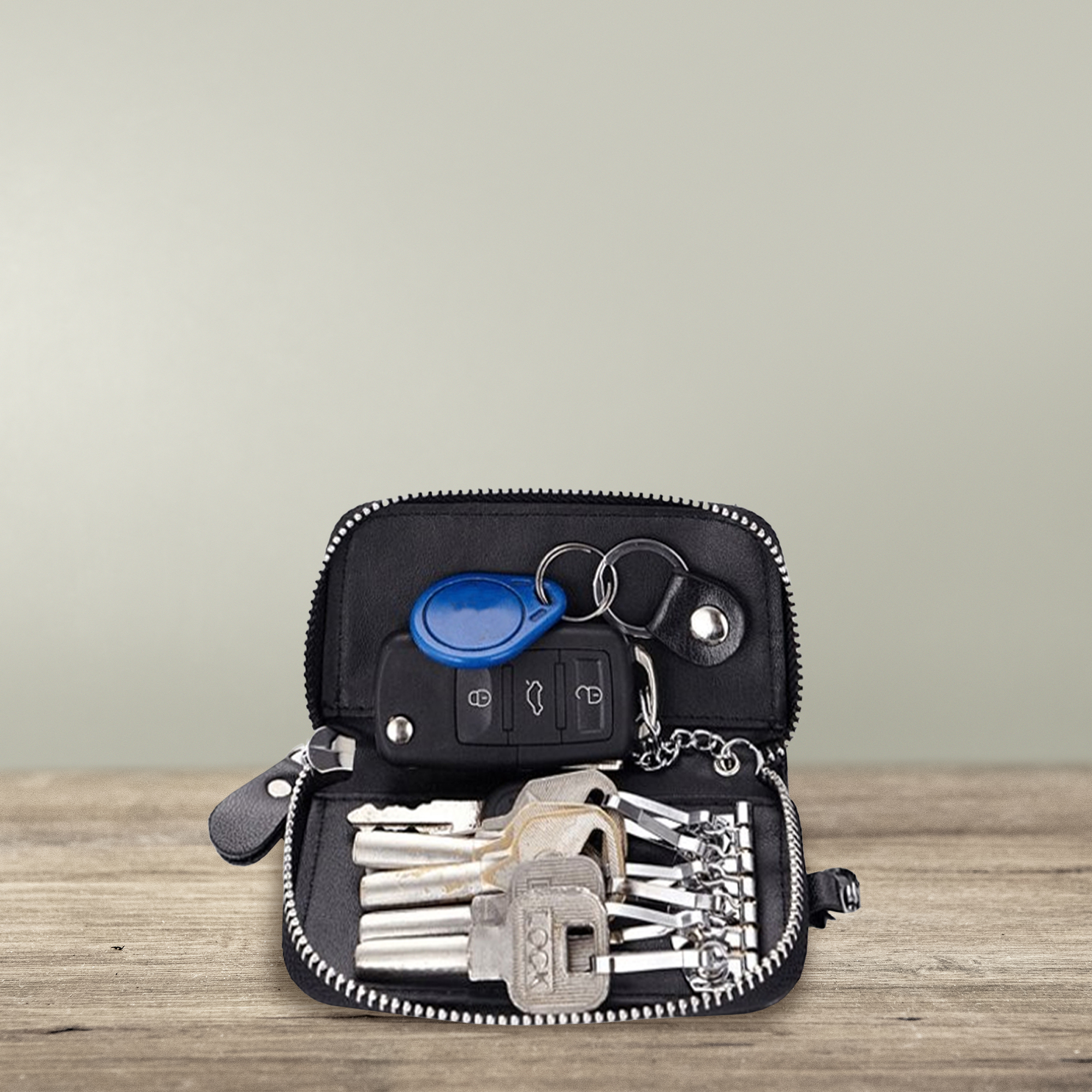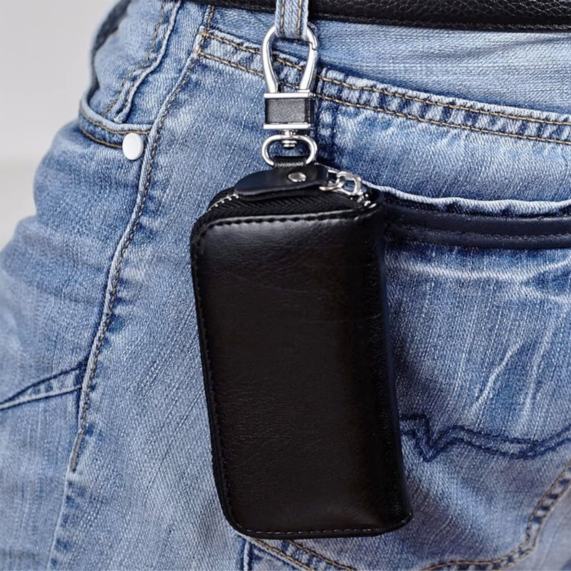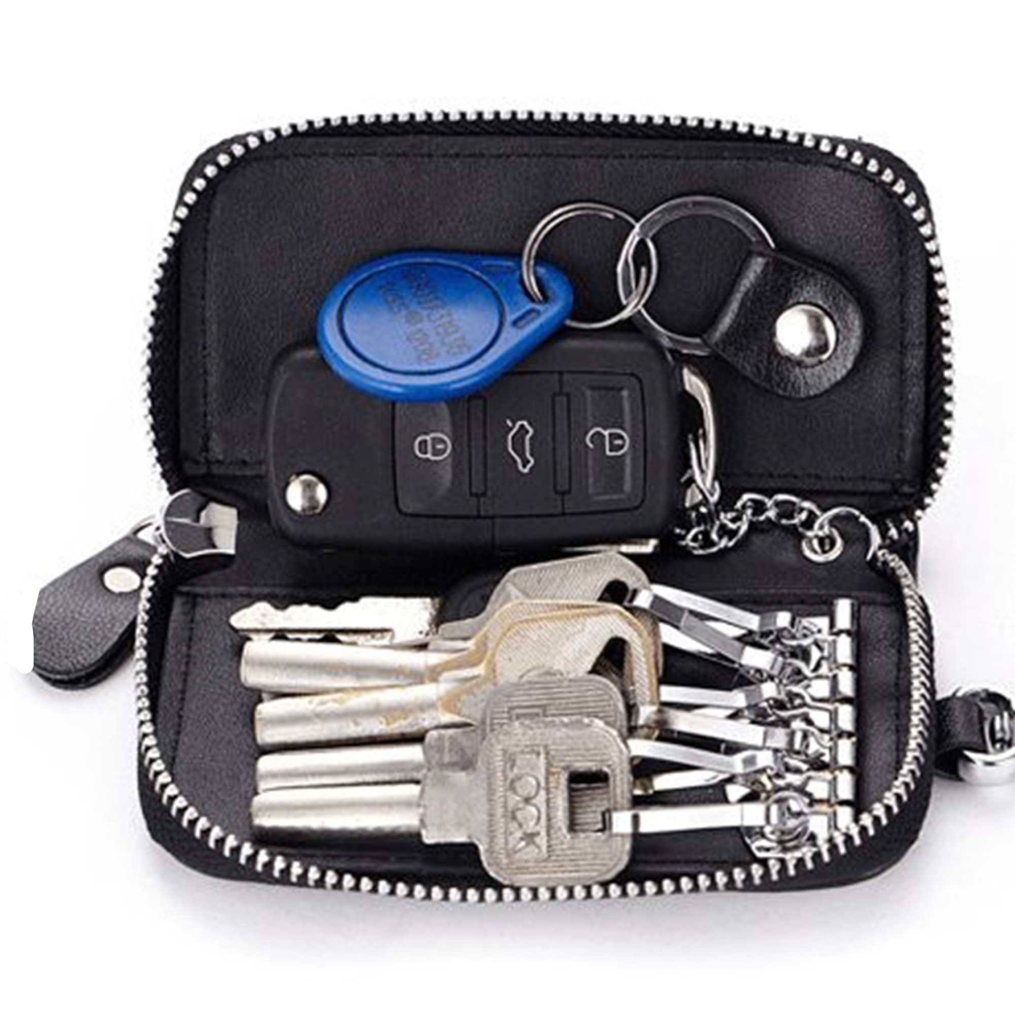 Regroupez vos clés en un seul et même endroit ! Mettre régulièrement des clés dans les poches de vos pantalons et dans votre sac cause des fissures, abîme le tissu et des accessoires tel que vos téléphones portables. La matière en cuir de vachette véritable bien solide vous protègera de ces risques. Très discrète, cette pochette se glissera facilement dans votre poche et votre sac à main. Rassemblées dans cette élégante pochette, vous aurez plus de facilité à avoir accès à vos clés de voiture, de maison, de boîtes aux lettres, de coffre fort, vos badges etc… Vous pouvez même y ranger des billets de banque, quelques pièces et vos différentes cartes. Pratique, le crochet vous permet une fois chez vous de suspendre la pochette ou de l’accrocher dans votre sac. Caractéristiques: – Matière: cuir véritable – Dimensions: 12 x 6,5 x 2,5 cm – Poids: 102g – Couleur: noir