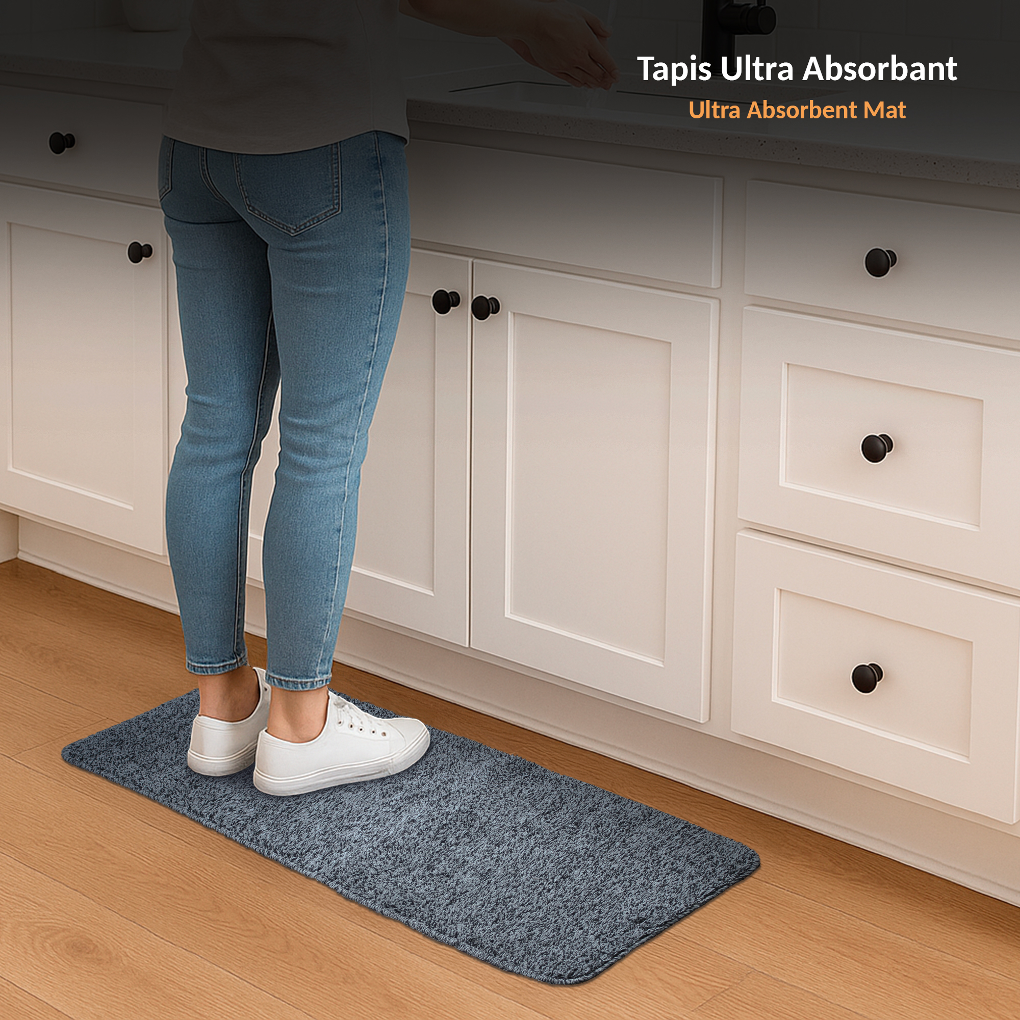 Vous en avez assez des tapis dont l’efficacité n’est pas optimale ? Nous vous proposons LE tapis qui vous facilitera la vie et surtout l’entretien de la maison. Le secret de son efficacité réside dans le pouvoir ultra absorbant du coton et la technologie de tressage 3 fils véritables remparts contre les traces de boues, de poussières et d’eau. Aucun risque de chute grâce au revêtement caoutchouc anti-dérapant et à la finition surjet , il tient parfaitement en place. Pratique, son épaisseur d’1 cm permet d’ouvrir et fermer la porte sans que le tapis ne gène. Atout non négligeable, il est lavable en machine. Il deviendra l’accessoire indispensable devant votre porte d’entrée, de jardin, dans la salle de bain ou dans la cuisine. Caractéristiques : – Fibres : 70% coton, 30% polyester – Semelle : 100% caoutchouc naturel – Coloris : Gris chiné – Livré sous polybag