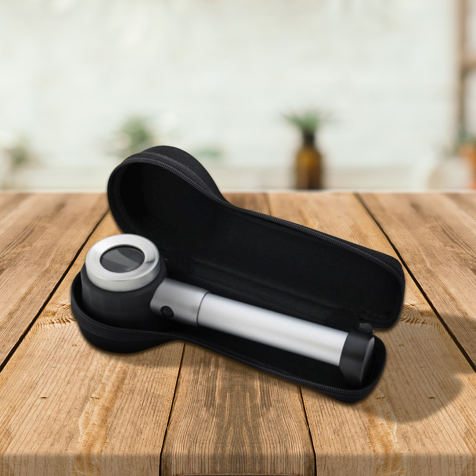 Avec son grossissement x10, cette loupe de précision est l’outil idéal pour analyser bijoux, timbres, billets, pièces de monnaie, textiles, détails d’un tableau et même réparer vos appareils électriques… Collez l’oeil à la loupe et faites défiler l’objet en dessous. Pour une vision optimale, ses 3 LED illuminent l’objet observé. La surface d’observation de 20 x 20 mm est graduée pour un pour un comptage éventuel des détails (nombre de fils, dents de timbre…) Les lentilles en verre optique haute qualité et son corps en aluminium en font un objet agréable à utiliser. Sa housse de transport rigide et zippée vous permettra de l’emmener partout avec vous. Caractéristiques : – Matières : aluminium, kirsite et verre optique – Alimentation : 2 piles AA non fournies – Lentilles : Ø 30 mm – Graduation en centimètres et en pouces – Inclus : housse de transport et tissu microfibre de nettoyage – Certifiée CE, RoHS et Reach