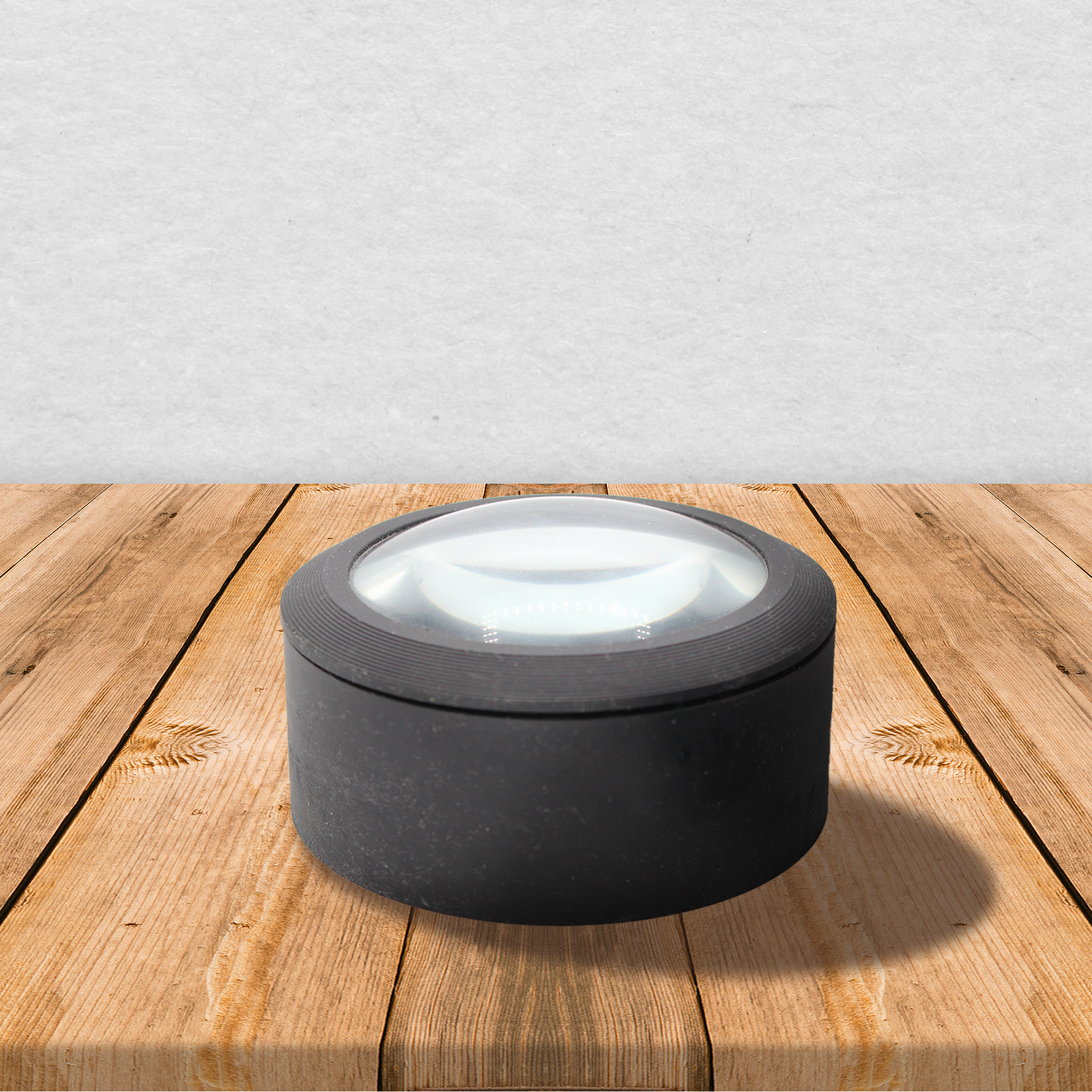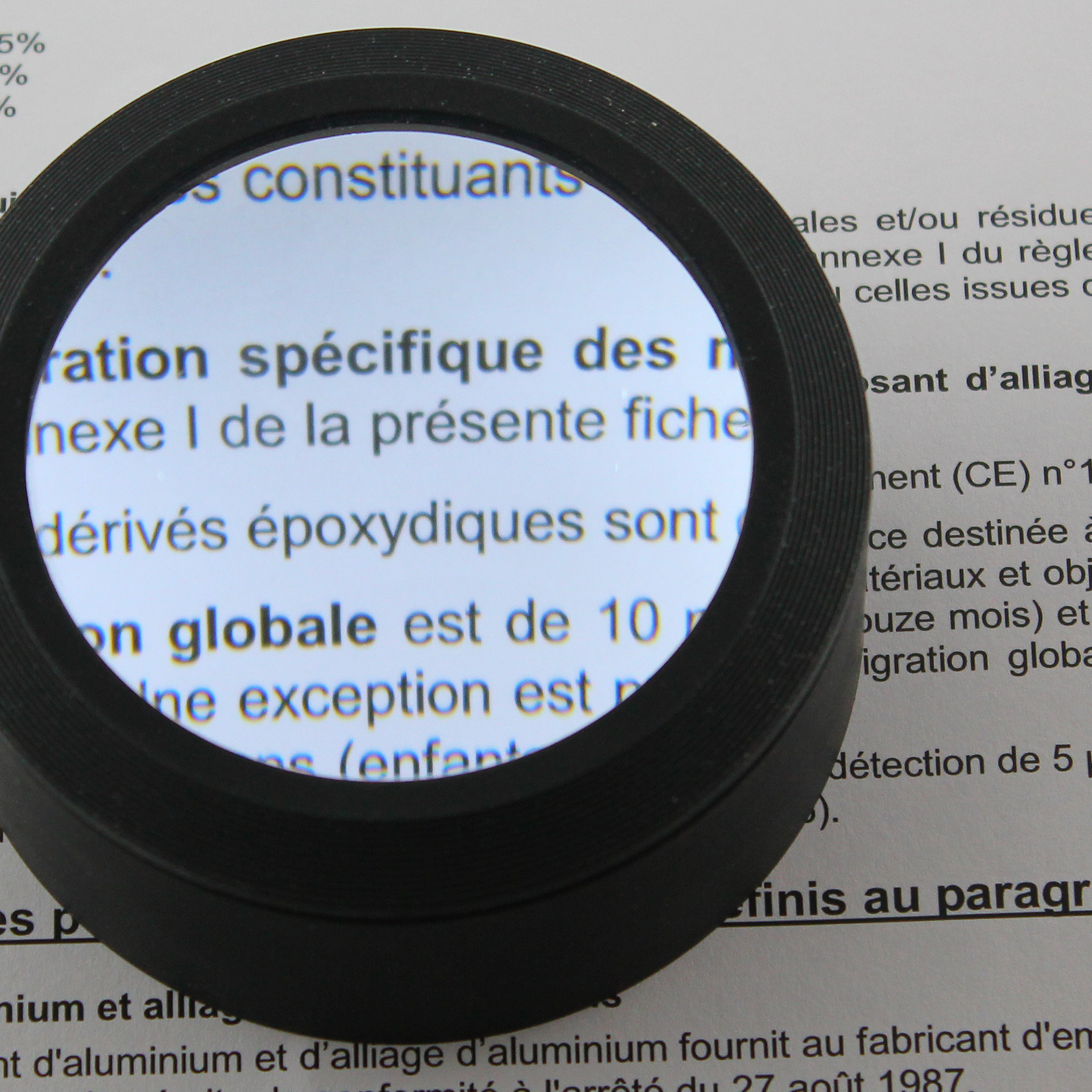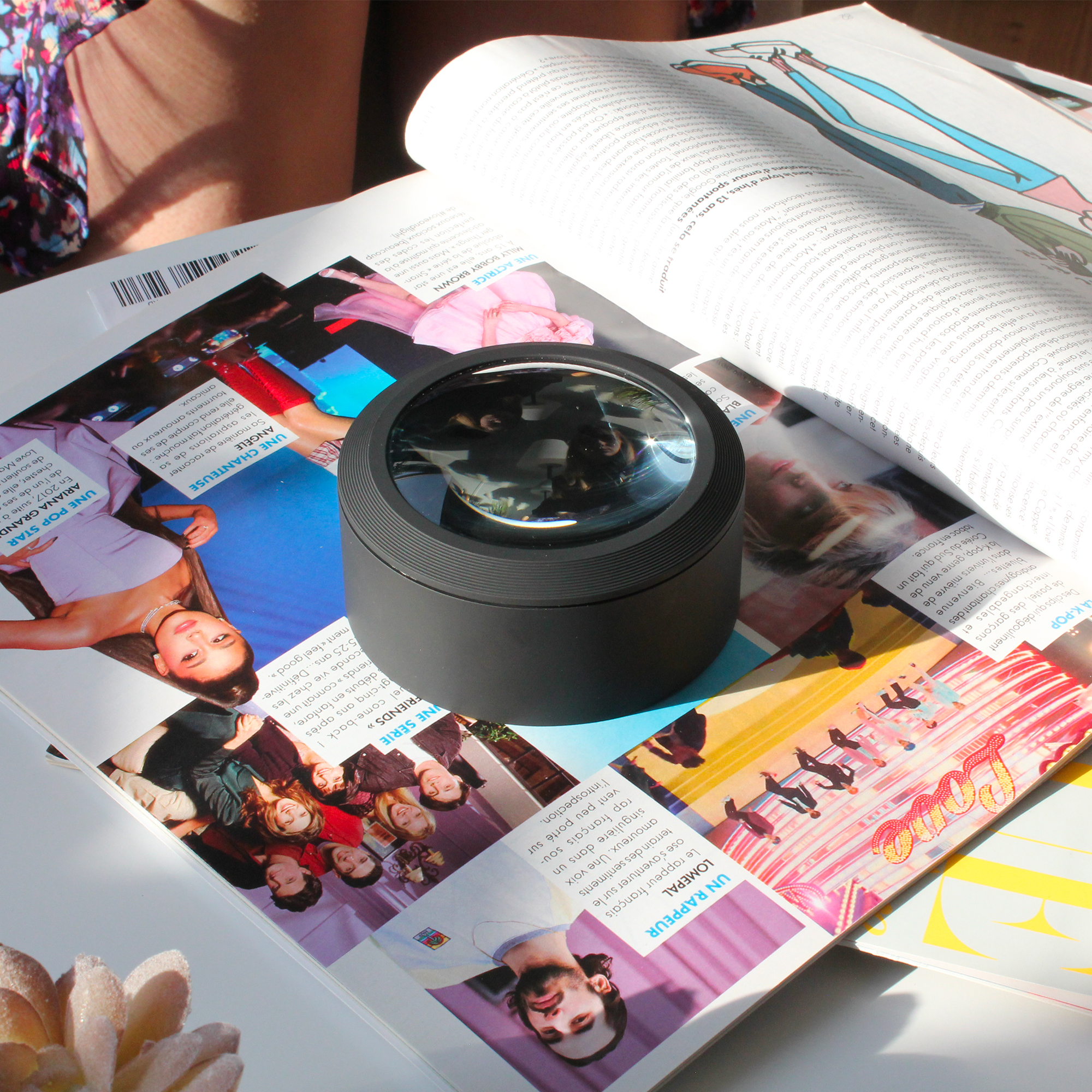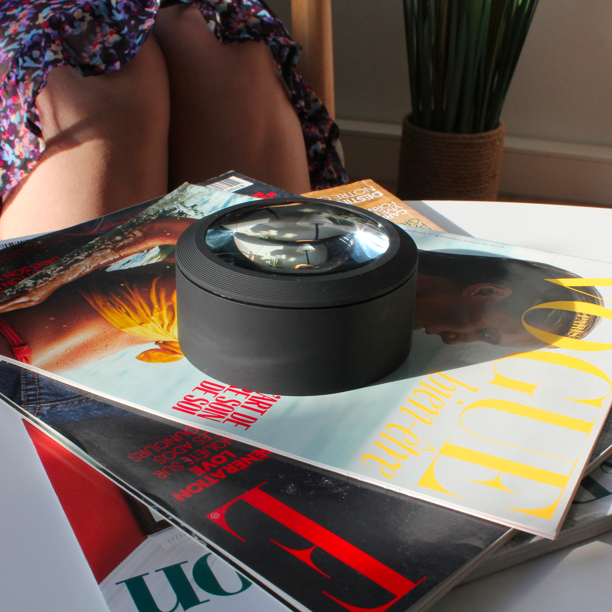 La lecture des petits caractères n’a jamais été aussi facile ! Les documents qui nous entourent contiennent des petites lignes, difficilement lisibles. Journaux, notices, ordonnances, documents administratifs… leur lecture peut vite devenir problématique. Avec son grossissement x5, cette loupe pratique et légère vous accompagnera partout. Son utilisation n’est pas fatigante, vous la posez et la faites glisser sur le support à lire. Vous n’avez pas à la conserver en main. Pour une lecture dans un environnement assombri, ses 3 LED s’allument et s’éteignent par simple pression sur le bord du verre. Elles s’éteignent automatiquement après 10 minutes, afin de préserver vos piles en cas d’oubli. Son verre optique haute qualité et son revêtement “soft touch” en font un objet agréable à utiliser. Sa housse de transport zippée vous permettra de l’emmener partout avec vous. Caractéristiques : – Matières : ABS et verre optique – Alimentation : 2 piles bouton CR2016 fournies – 3V – Taille : Ø 9,2 x 5,2 cm – Inclus : housse de transport et tissu microfibre de nettoyage – Certifiée CE, RoHS et Reach