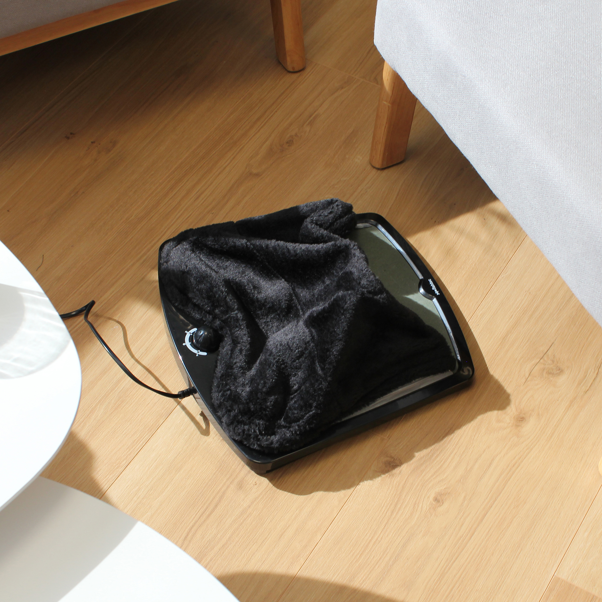 Relaxez-vous les pieds ! N’ayez plus jamais froid aux pieds quand vous regardez la télé ou lisez un livre. Ce chauffe-pieds vous procurera un confort douillet grâce à sa base chauffante et son couvre-pieds en fourrure synthétique. La chaleur douce dégagée par ce chauffe-pieds détendra les articulations de vos pieds ou tout simplement vous permettra de vous reposer après une longue journée. 2 niveaux de température réglables pour une température maximum de 40° environ. Entretien facile : la fourrure déhoussable est lavable en machine à 30°. Pour une sécurité optimale, l’appareil est protégé en cas de surchauffe. Caractéristiques : Matières : base en plastique antidérapante. Fourrure 100% polyester. – Alimentation : sur prise secteur 220V – Longueur cordon : 1,5 m – cordon en silicone. – Niveaux de chauffe : niveau 1 voyant orange, niveau 2 voyant rouge – Entretien : fourrure déhoussable et lavable en machine à 30° – Protection contre la surchauffe – Certifié CE et RoHS