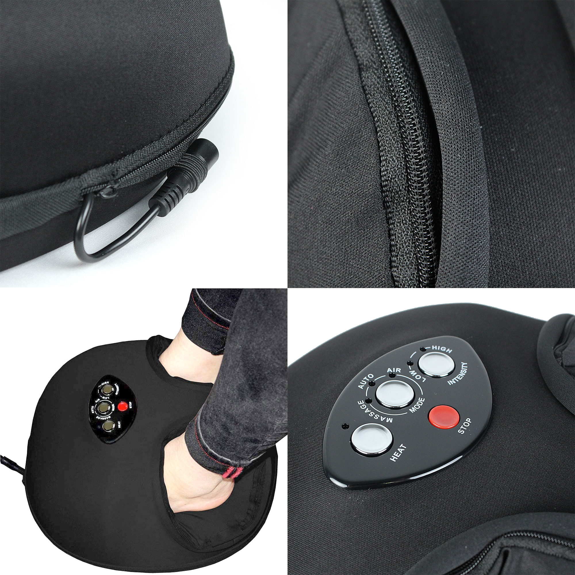 Choyez vos pieds ! Selon les principes de la réflexologie, le massage des pieds favorise le soulagement des douleurs et l’évacuation de toutes les formes de tension. Ce masseur vous propose deux types de massage : celui reproduisant la pression des doigts inspiré du Shiatsu et le massage effectué par compression d’air, la pressothérapie. Vous disposez de 3 modes : massage “shiatsu”, massage par préssothérapie, mode combiné “shiatsu” et pressothérapie. Vous pouvez également choisir l’intensité du massage. Chaque séance dure 15 minutes et le masseur s’arrête automatiquement à la fin de la séance. Vous pouvez, au choix, activer la fonction chaleur, pour une détente complète et une sensation très agréable. Les housses intérieures sont détachables pour être nettoyées plus simplement. Caractéristiques : – Matières : polyester et mousse – Alimentation : secteur 220 – 240V – 12 volts – 15 watts – Certifié CE, RoHS et LVD