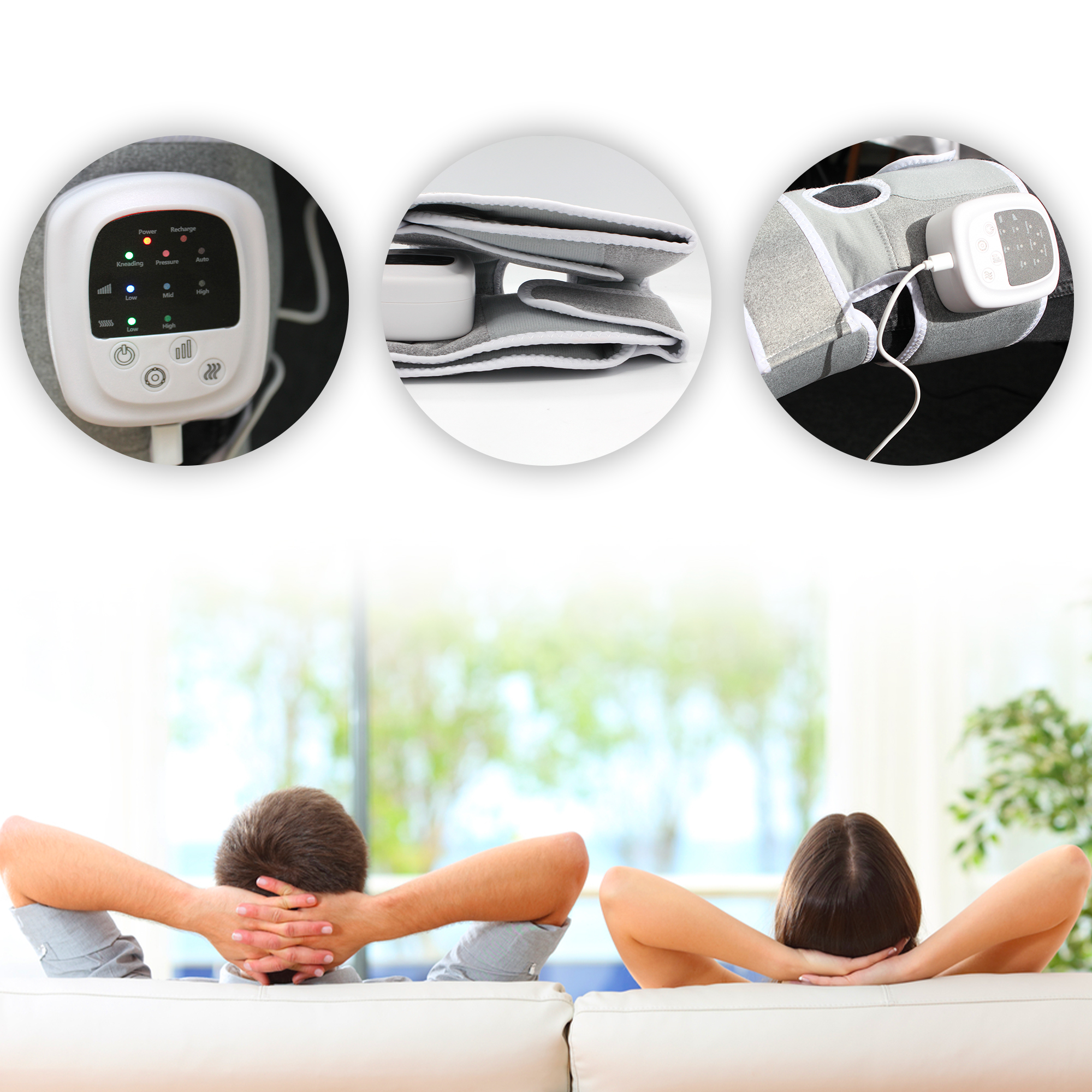 Pour soulager les douleurs aux genoux, le massage est une solution idéale mais peu aisée à faire soi même. Ce masseur s’occupe de tout et vous n’avez plus qu’à profiter de ses bienfaits. Il utilise la technique de la pressothérapie , il s’agit de coussins qui se gonflent et se dégonflent alternativement pour stimuler la circulation et soulager efficacement les sensations de douleurs. Pour compléter ses bienfaits, vous pouvez activer la fonction chaleur pour une sensation de bien être immédiat. Simple d’utilisation, il suffit de l’installer sur votre genoux ou par dessus votre vêtement à l’aide des grandes bandes auto agrippantes, de sélectionner l’un des 3 types de massage et l’intensité souhaitée. Chaque session dure environ 20 minutes et peut être modifiée ou stoppée quand vous le souhaitez. Double emploi, le masseur peut également être mis sur une épaule douloureuse. Rechargeable, il est sans fil et peut donc être utilisé où vous le souhaitez. La batterie Lithium dispose d’une grande capacité d’autonomie. Caractéristiques : – Matières : Textile synthétique, ABS – Poids : 600 g – Dimensions : 19 x 10.5 x 24.5 cm – Alimentation : Batterie Li-ion 2000mAh,3.7V, 6W Câble de chargement USB inclus (adaptateur secteur non inclus) – Autonomie : environ 2.5 h – Massage : 3 modes & 3 niveaux d’intensité – Chaleur : 2 intensités (45°C max) – Certifié CE, RoHS