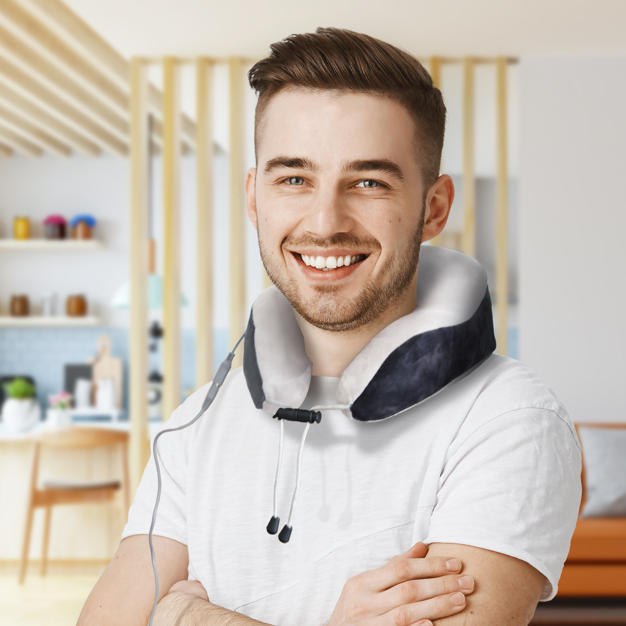Le masseur de cou par vibration convient au traitement ciblé de la tension et du durcissement musculaire au niveau du cou et des épaules. Vous pouvez effectuer un agréable massage vibratoire avec deux niveaux d’intensité en fonction de votre besoin. Le massage par vibration procure du bien-être grâce à son application ciblée et intensive. il détend les muscles, améliore la circulation sanguine et favorise la régénération des tissus. Le massage par vibration peut être complété par une fonction chauffante pour détendre encore plus la nuque. L’élément de commande intégré du masseur de cou vous permet d’utiliser votre appareil facilement et confortablement en un clic sur le côté. Ergonomique par sa forme en U et sa mousse à mémoire de forme afin d’offrir à votre cou un niveau de confort parfait. Caractéristiques : – Dimensions : 25 x 23 x 11 cm – Poids : 0.62 Kg – Matières : polyester, nylon, mousse mémoire de forme – Niveau de chauffe : 45°C – Niveau de vibration : (1) 3600 vibrations / min / (2) 6000 vibrations / min – Batterie : 1800 mAh – Autonomie : 3H Certifié CE, RoHS, Azo