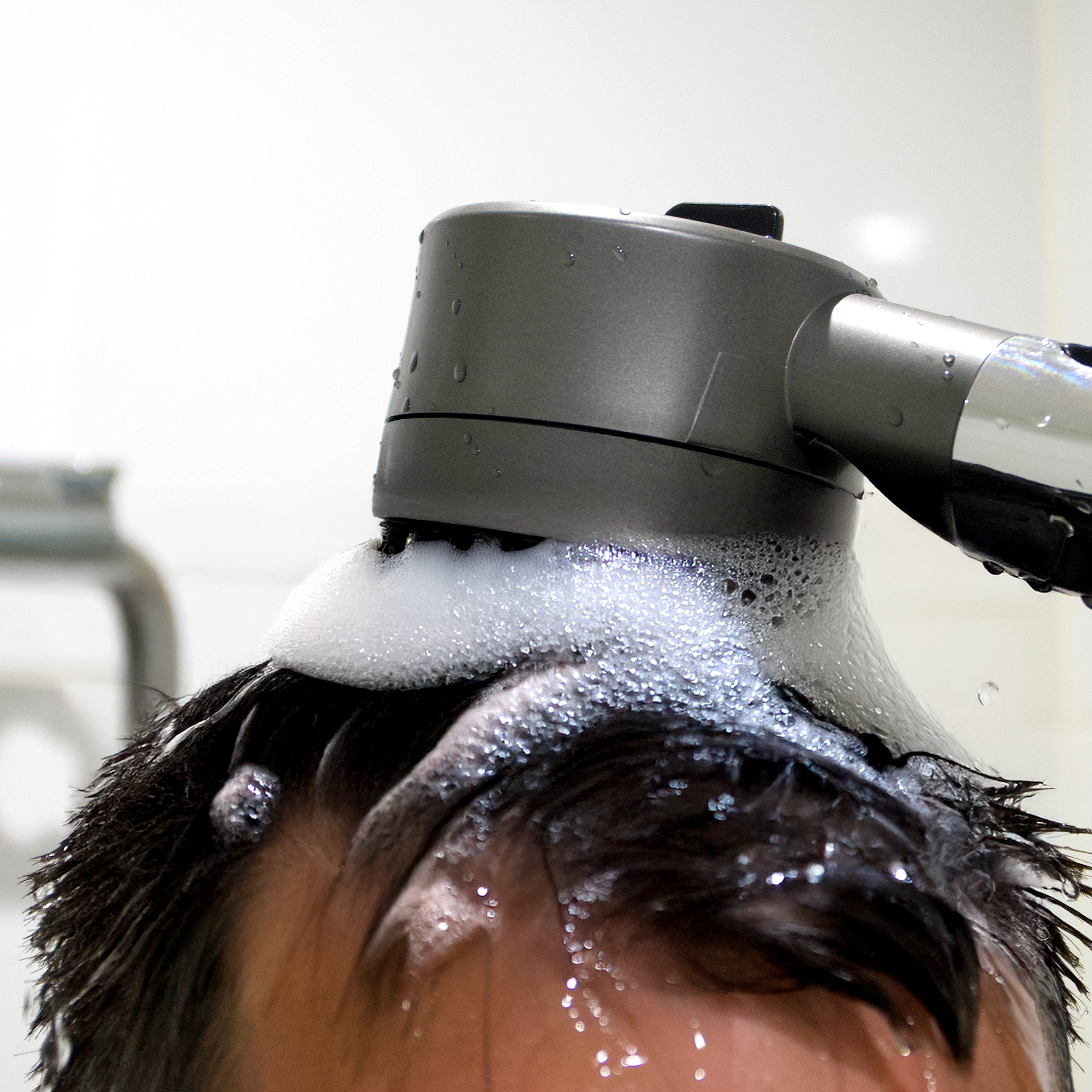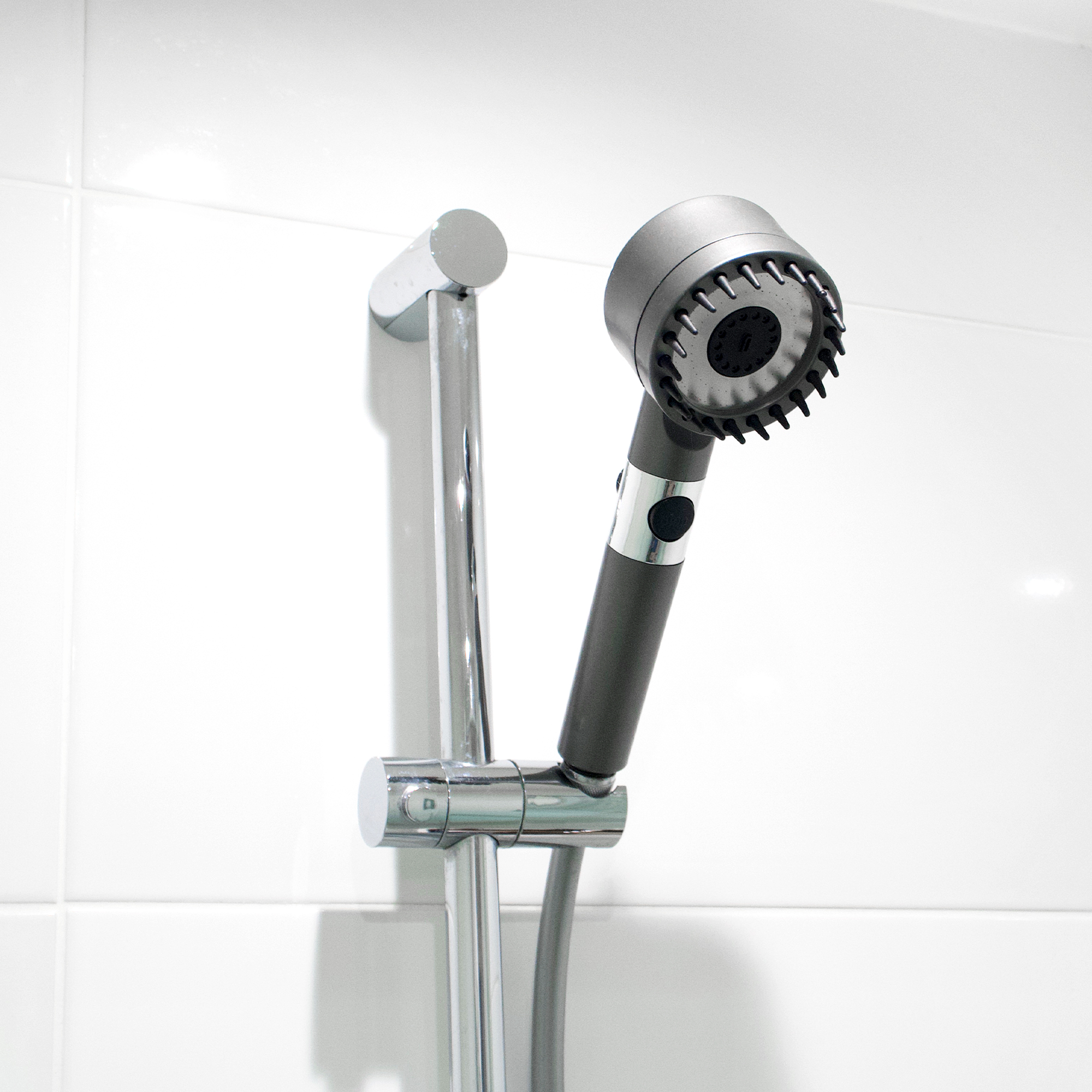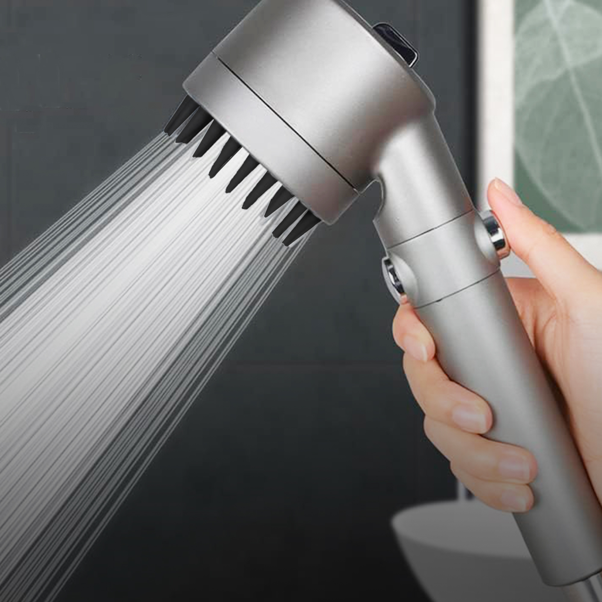 Tonique ou relaxante, à vous de choisir ! Avec ses 3 modes de jets allant du plus tonique au plus doux, ce pommeau de douche répondra à toutes vos envies. Pour une expérience “spa” complète, la tête du pommeau dispose de picots souples en caoutchouc que vous pourrez utiliser pour vous masser le corps ou le cuir chevelu. Le bouton de sélection des modes est situé à l’arrière de la tête, vous pouvez ainsi facilement changer la puissance du jet au cours de votre douche. Le bouton poussoir sur le manche du pommeau permet de gérer la mise en route et l’arrêt du jet sans avoir à toucher le robinet. Universel, ce pommeau s’installe sur tous les tuyaux de douche du commerce Caractéristiques : – Matières : ABS, Acier inoxydable, caoutchouc – Dimensions : Ø 7.5 x 25 cm