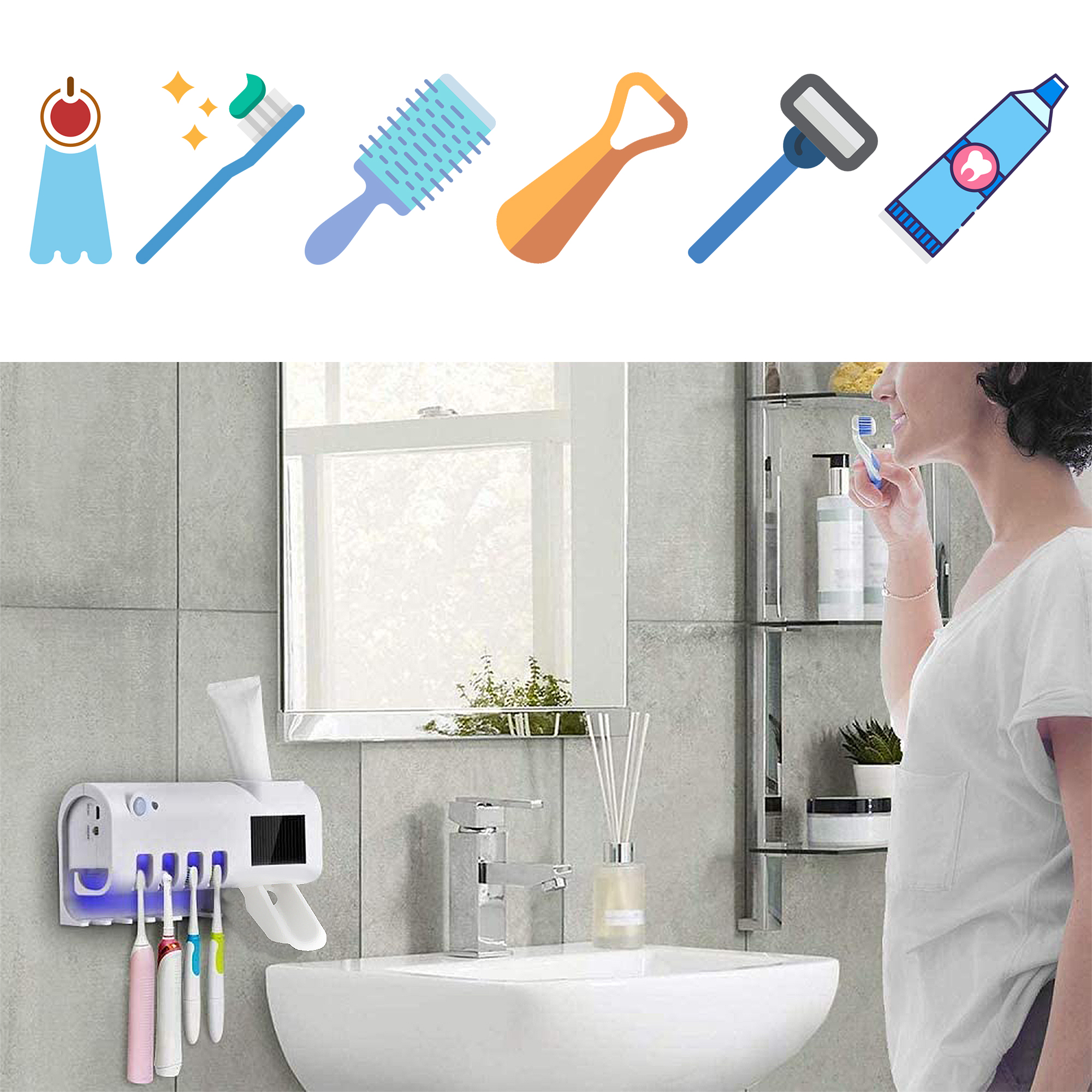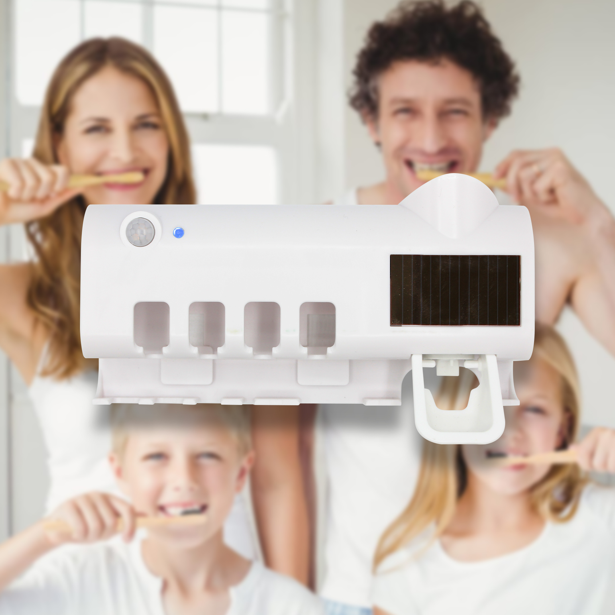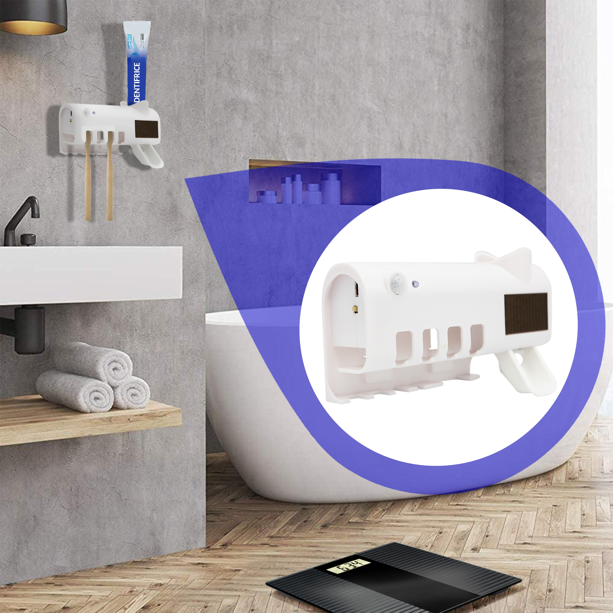 Un dentiste à la maison ! Le saviez-vous ? Une brosse à dents peut contenir plus de 10 millions de bactéries que vous mettez ensuite dans votre bouche ! Mais maintenant, le Stérilisateur ToothbrushUV vous offre une brosse à dents propre et une tranquillité d’esprit tous les jours grâce à son action UV qui élimine 99% des bactéries en 5 minutes ! N’ayez pas peur des rayons UV, votre stérilisateur est équipé d’un capteur de mouvement ! Les rayons UV ne s’activent que lorsqu’il n’y a personne dans la pièce. De plus, son panneau solaire fin en silicone amorphe inspiré de ceux des stations spatiales et sa faible consommation d’énergie le rendent ultra économique, il peut tenir jusqu’à 4 mois avec une seule charge ! En plus d’être un indispensable de l’hygiène dentaire, le stérilisateur toothbrush vous permet également d’organiser votre salle de bain ! Il est équipé d’un distributeur de dentifrice, universel grâce à son adaptateur en silice de qualité alimentaire. Le support UV peut nettoyer jusqu’à 4 brosses à dents en même temps, et il y a des emplacements de rangement sur le dessous afin d’y ranger rasoirs ou fil dentaire par exemple. Prenez soin de votre hygiène buccale et ne gaspillez plus votre dentifrice ! Caractéristiques : – Dimensions : 19 x 5 x 12.5 cm – Alimentation : Solaire (une charge/4 mois) & cable USB (adaptateur non inclus) – Désinfection : Rayons UV (253 mn) – Inclus : Adhésif mural Certificats : CE & ROHS