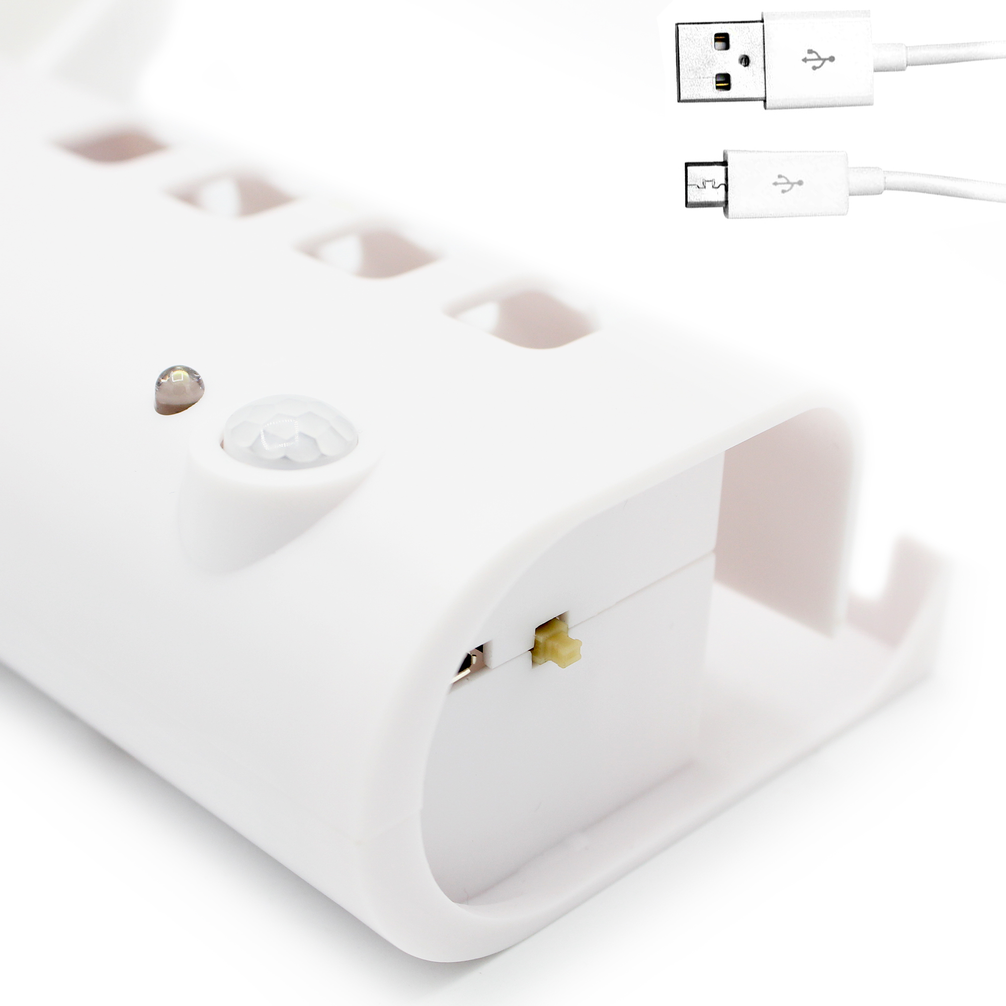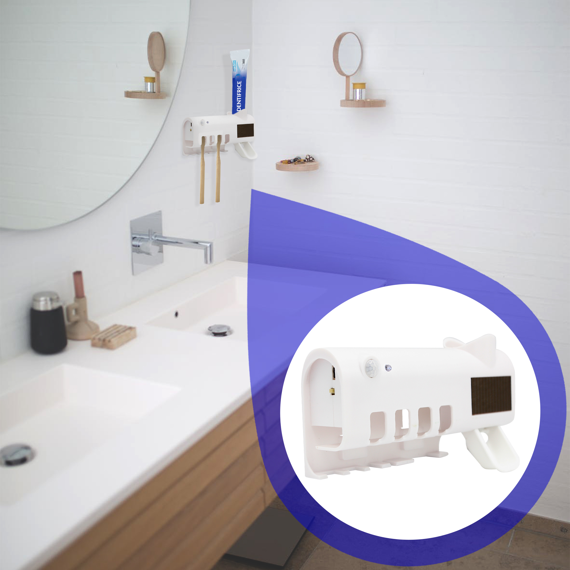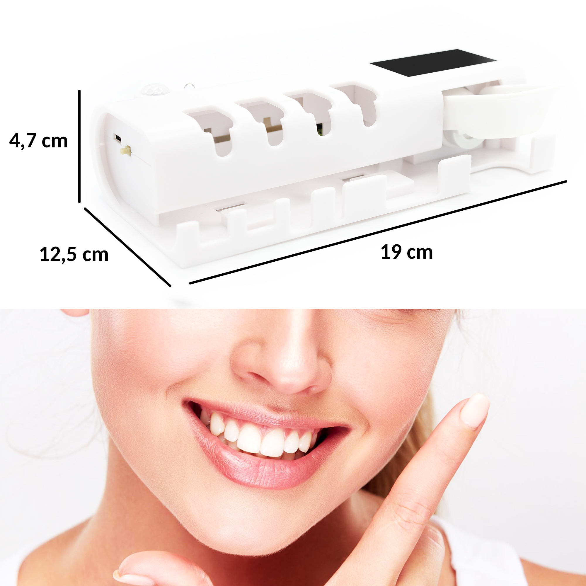 Un dentiste à la maison ! Le saviez-vous ? Une brosse à dents peut contenir plus de 10 millions de bactéries que vous mettez ensuite dans votre bouche ! Mais maintenant, le Stérilisateur ToothbrushUV vous offre une brosse à dents propre et une tranquillité d’esprit tous les jours grâce à son action UV qui élimine 99% des bactéries en 5 minutes ! N’ayez pas peur des rayons UV, votre stérilisateur est équipé d’un capteur de mouvement ! Les rayons UV ne s’activent que lorsqu’il n’y a personne dans la pièce. De plus, son panneau solaire fin en silicone amorphe inspiré de ceux des stations spatiales et sa faible consommation d’énergie le rendent ultra économique, il peut tenir jusqu’à 4 mois avec une seule charge ! En plus d’être un indispensable de l’hygiène dentaire, le stérilisateur toothbrush vous permet également d’organiser votre salle de bain ! Il est équipé d’un distributeur de dentifrice, universel grâce à son adaptateur en silice de qualité alimentaire. Le support UV peut nettoyer jusqu’à 4 brosses à dents en même temps, et il y a des emplacements de rangement sur le dessous afin d’y ranger rasoirs ou fil dentaire par exemple. Prenez soin de votre hygiène buccale et ne gaspillez plus votre dentifrice ! Caractéristiques : – Dimensions : 19 x 5 x 12.5 cm – Alimentation : Solaire (une charge/4 mois) & cable USB (adaptateur non inclus) – Désinfection : Rayons UV (253 mn) – Inclus : Adhésif mural Certificats : CE & ROHS
