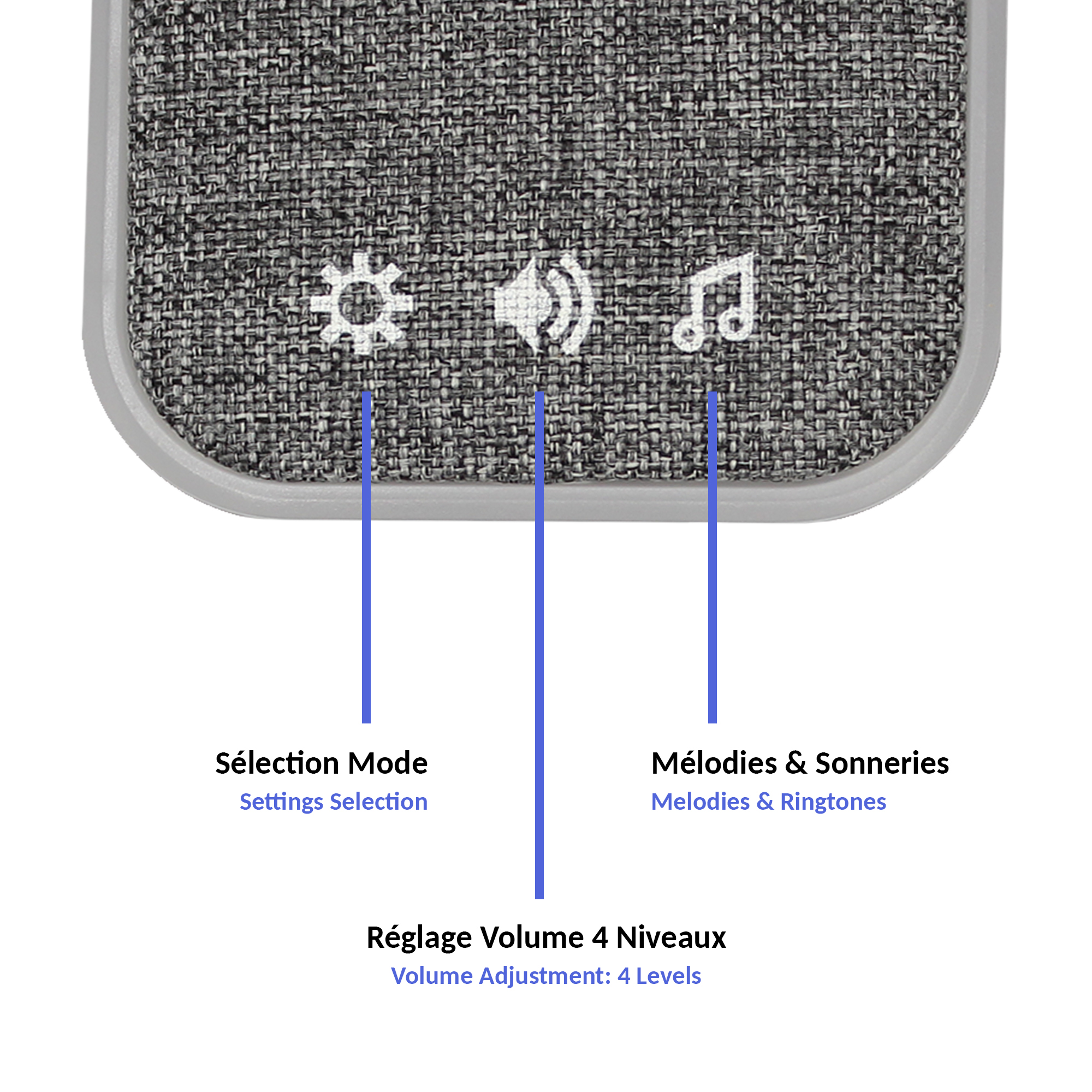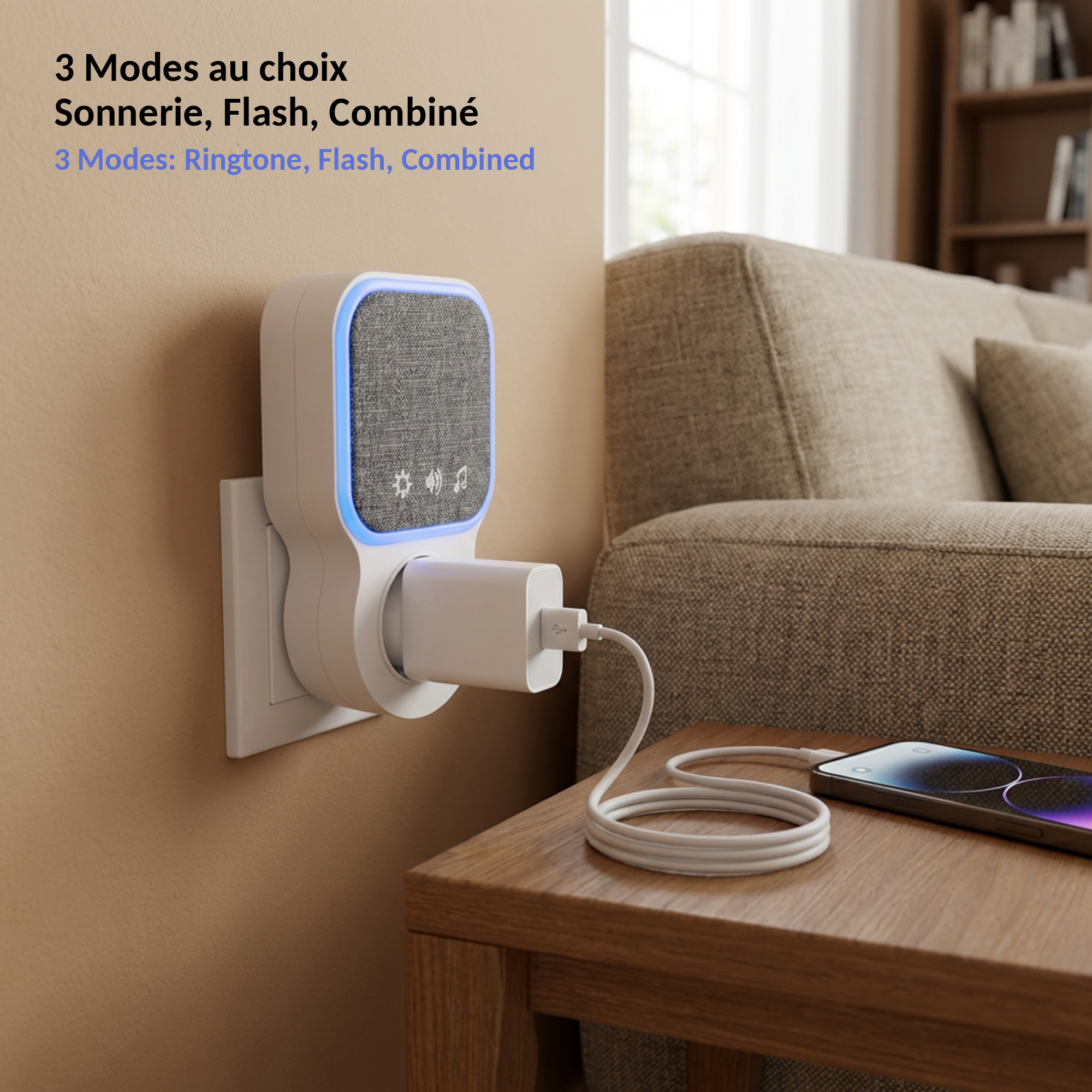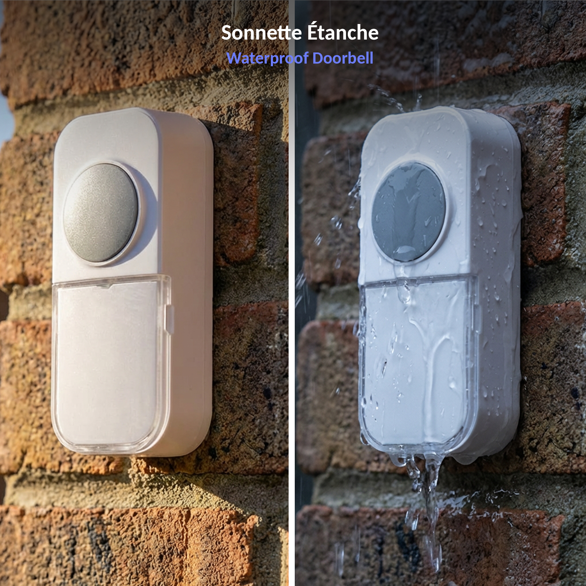 Appuyez sur la sonnette et donnez vie à la technologie sans fil Petite merveille de technologie, cet émetteur transforme l’énergie cinétique en signal radio fréquence, le tout sans pile ni fil électrique ! Vous installez l’émetteur où bon vous semble, sur votre porte d’entrée ou près de votre portail extérieur. Conçu pour un usage en intérieur et extérieur, il résiste aux intempéries. Le récepteur quant à lui, se branche simplement sur la prise de votre choix. Discret et facile à déplacer, il trouvera sa place dans n’importe quelle pièce de votre maison. Pratique le récepteur dispose d’une fiche qui vous permet de conserver l’utilisation de votre prise. Choisissez entre 36 mélodies et sonneries différentes. Le volume est réglable sur 4 niveaux d’intensité Complet, le receveur dispose de 3 modes différents : sonnerie + flash, sonnerie uniquement ou flash uniquement. Ces 3 modes permettent d’adapter parfaitement cette sonnette à vos besoins Caractéristiques : – Matière : ABS – Dimensions : Recepteur : 12.7 x 7.4 x 6.1 cm Emetteur : 8.9 x 4 x 2.2 cm – Alimentation du récepteur : 220-240V 50HZ – Fréquence : 433.92 MHz – Portée de 150 mètres en champ libre – Certifiée CE, RoHS, LVD, RED, IP 55 – Accessoires : visserie et double face pour fixer l’émetteur